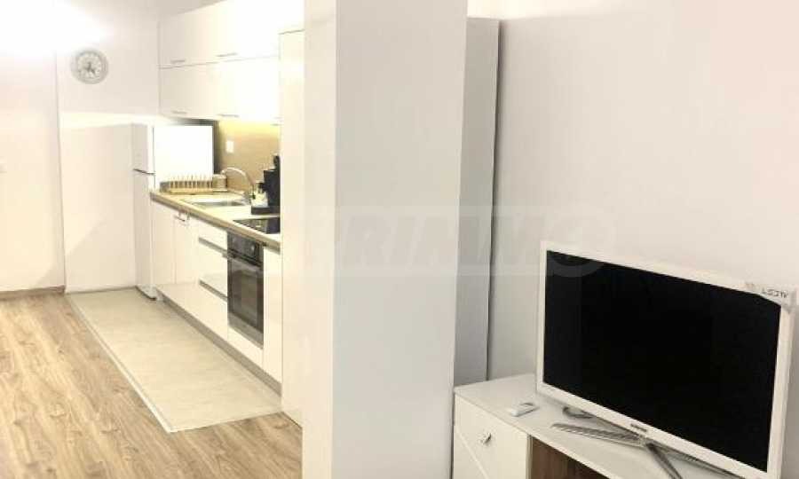 Представяме просторен едностаен апартамент под наем, разположен в нова сграда с елегантна фасада в сърцето на столицата.