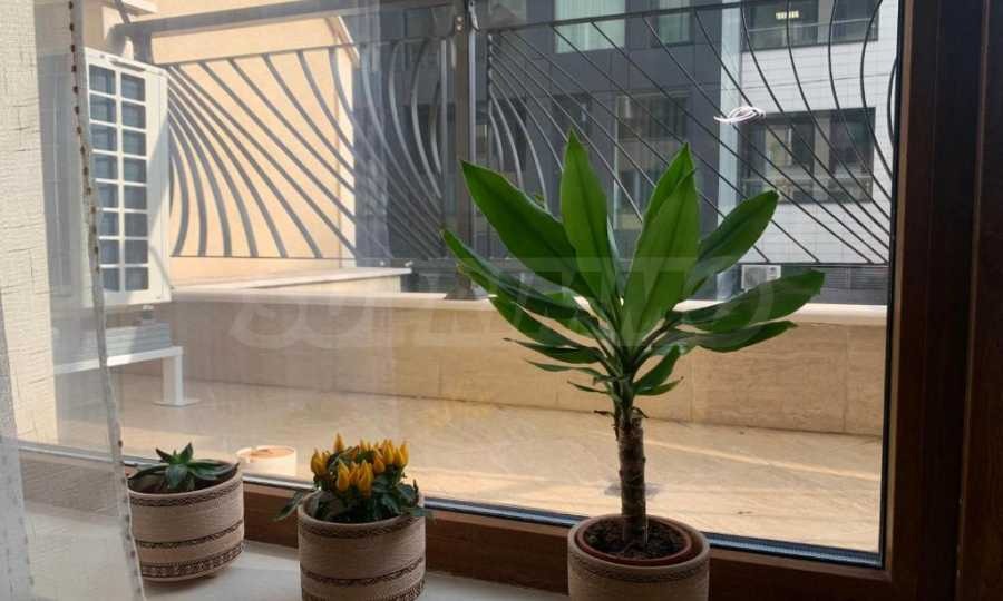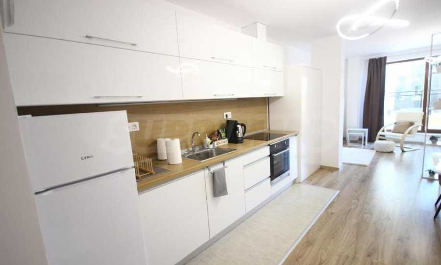 Жилището впечатлява със своята просторна и светла атмосфера, съчетана със стилно и практично обзавеждане.