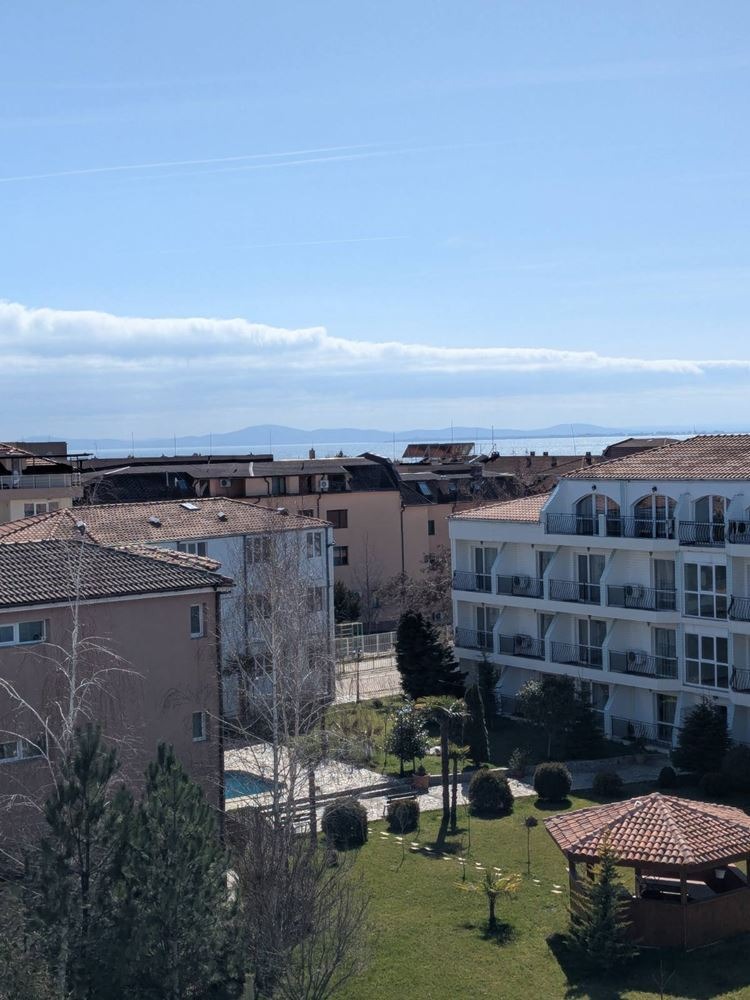 Предлагаме за продажба обзаведен двустаен апартамент с гледка към морето, в комплекс Одисей , разположен на 300м от плажната ивица. Апартаментът е разположен на пети жилищен етаж с площ от 69 кв. м. Разпределение: просторна дневна с кухненски бокс и кът за хранене, зона за отдих, 2 спални, коридор, 2 бани с душ кабина и тоалетна, просторна тераса. Комплексът е разположен в местност Аурелия, на границата между Несебър и Равда, на 300м от плажа. Удобства: 2 басейна с детска секция и шезлонги, ресторант, СПА център, добре поддържана и озеленена територия, фитнес център, детска площадка, паркинг, 24 часова охрана и поддръжка. Около комплекса има добре изградена инфраструктура плаж, аквапарк, кафенета, ресторанти, супермаркети, автобусна спирка.Апартаментът е изключително подходящ за живеене и отдаване под наем целогодишно.Акт 16 и отделна партида за ток.