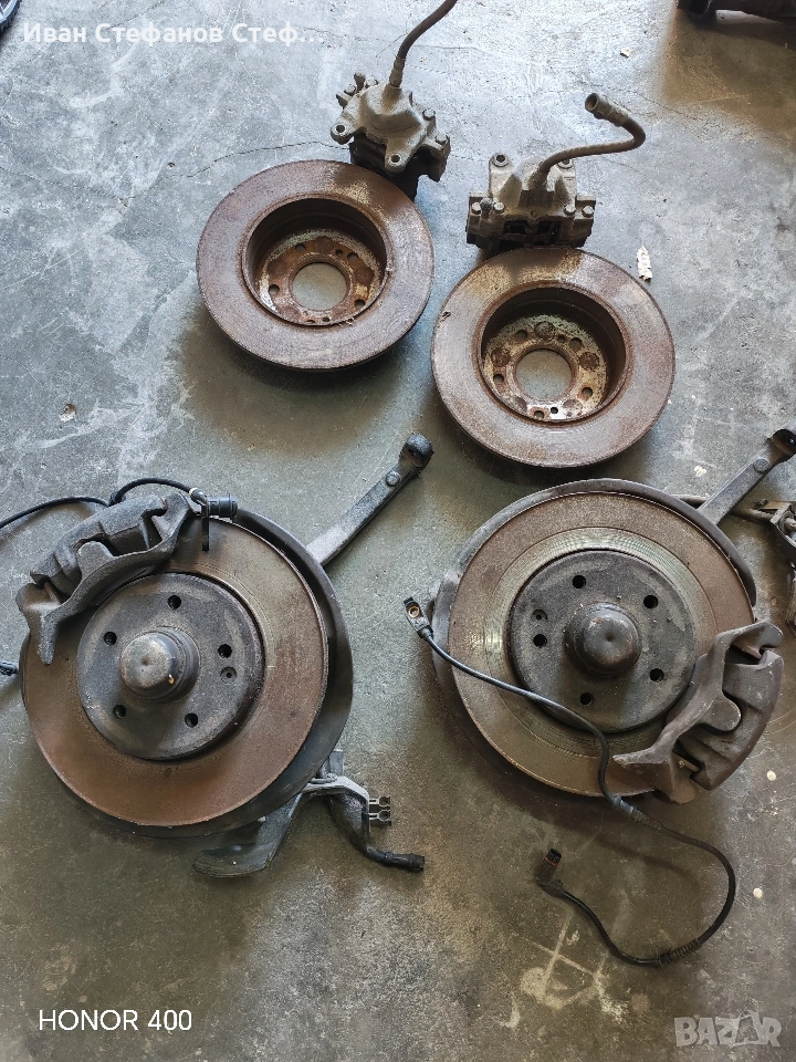 Комплект предни и задни дискове със спирачни апарати, с датчици и чисто нови накладки