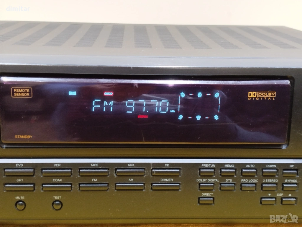 е многоканален AV съраунд ресивър в добро работещо състояние реалната му синусоидална изходна мощност е от 120W .