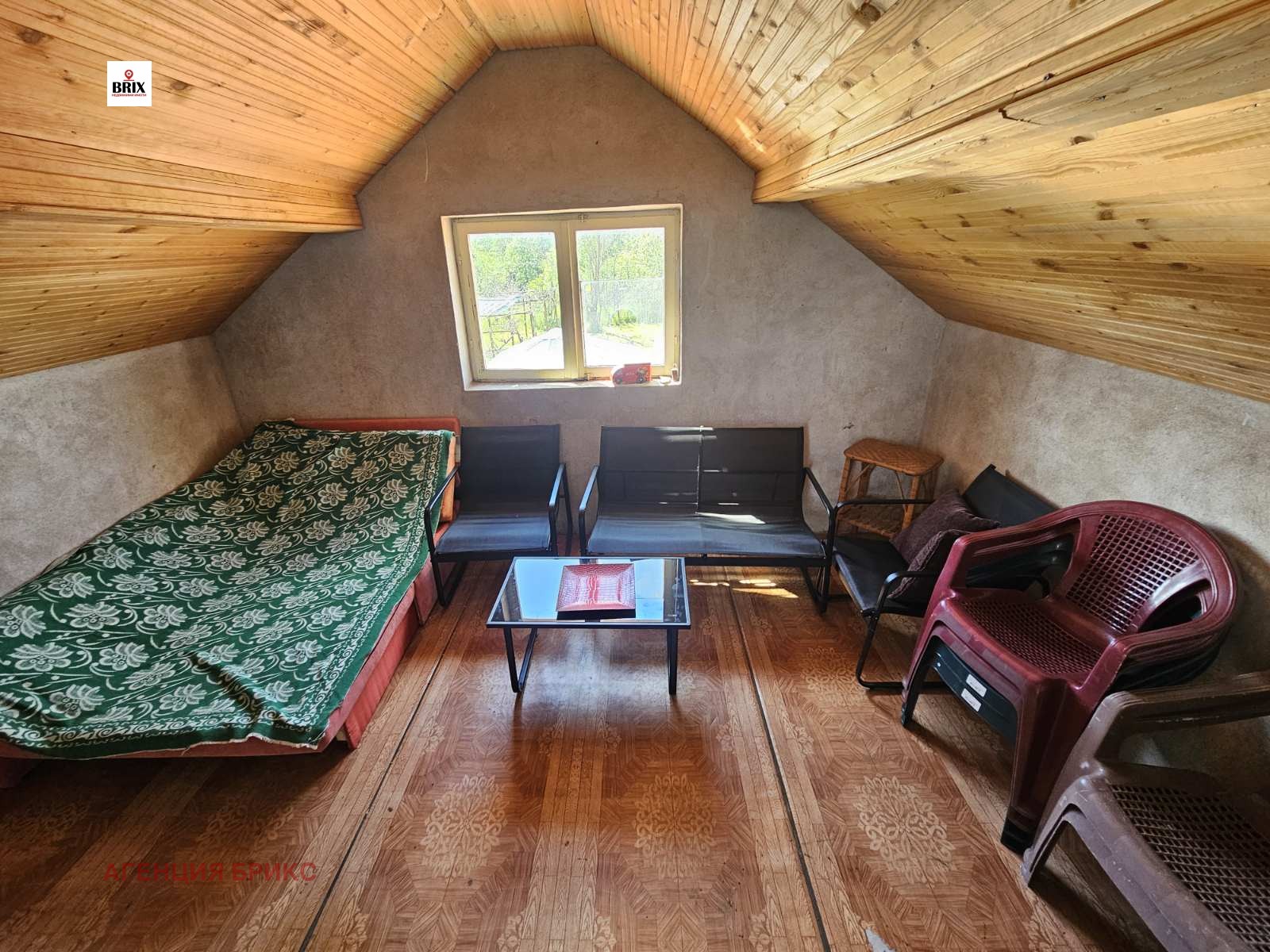 Имотът разполага със застроена площ от 29 кв.м, функционално разпределена на два етажа и беч.