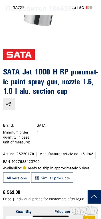 Пистолет, за боядисване Sata Jet H → Обява 54252176