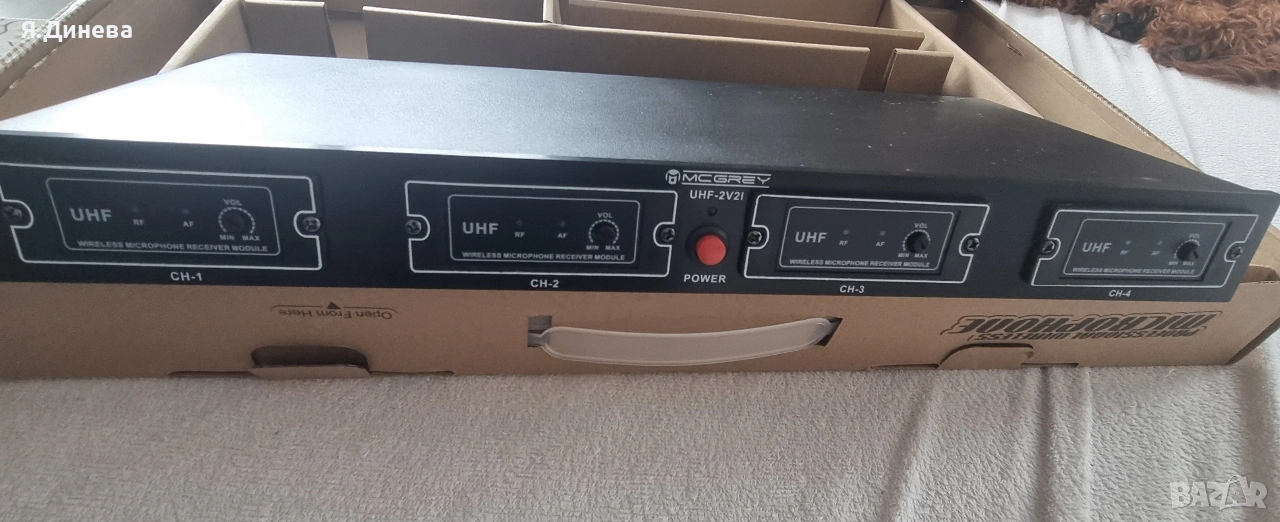 Приемникът е оборудван с 4 еднакви UHF приемни модула. Всеки модул има два индикаторни светодиода: RF-LED (радиочестота), AF-LED (аудио сигнал, пик) и контрол за регулиране на силата на звука на аудио сигнала. С превключвателя за включване/изключване отпред можете да включвате/изключвате устройството.