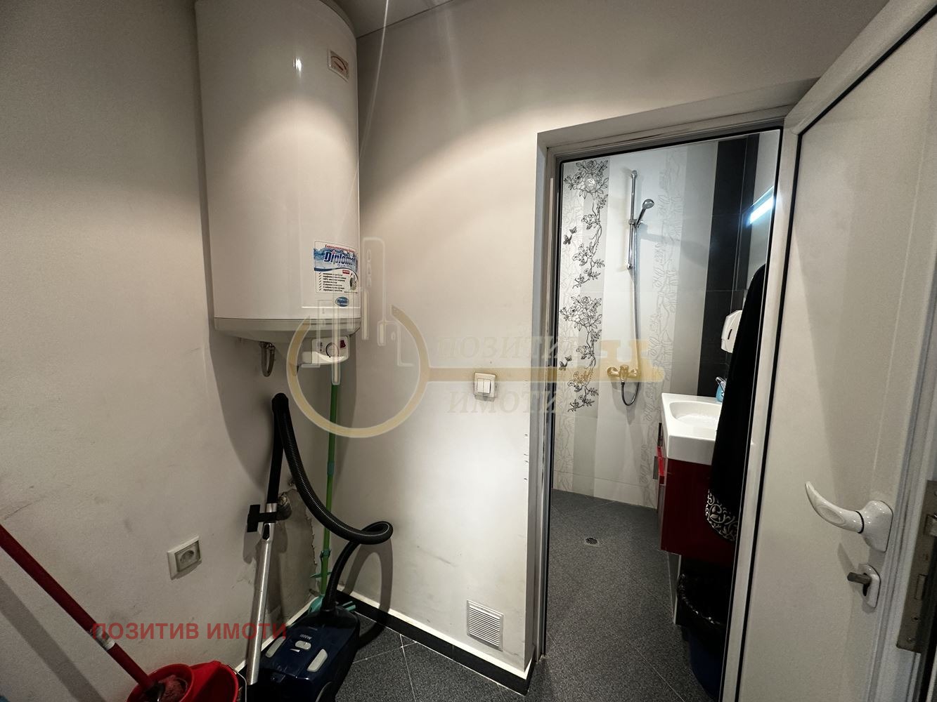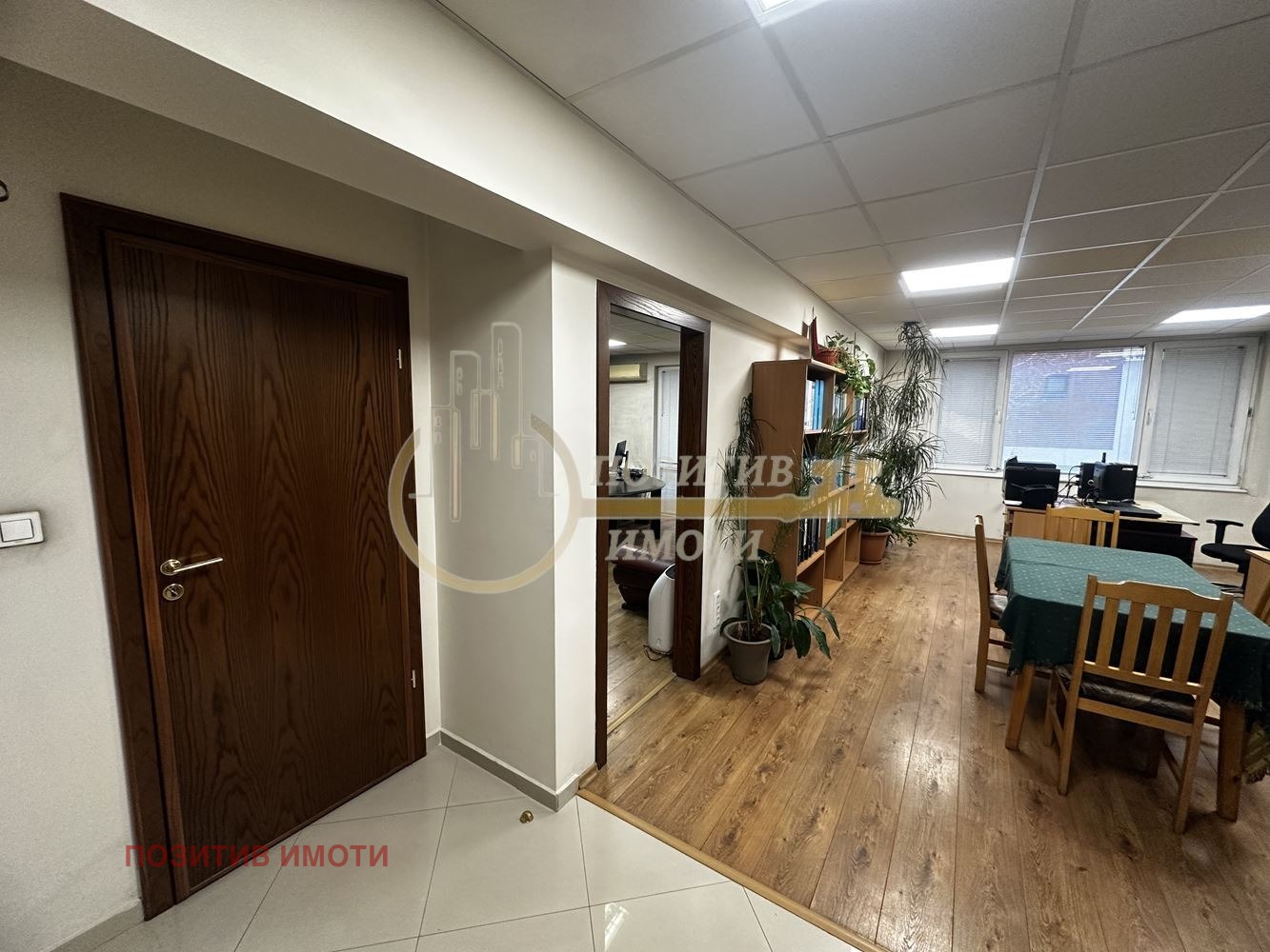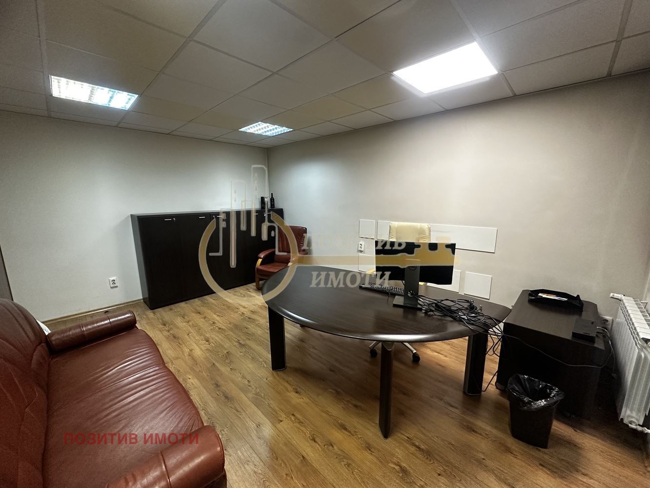 Офисът е разположен на 1-ви етаж (над магазин) в тухлена сграда от 2010. Състои се от две работни помещения, кухненски бокс, компактно складово помещение пред баня с тоалетна и тераса с излаз и от двете стаи. Имота се отдава с обзавеждането от снимките, включително оборудването в кухненския бокс. Варианти за отопление на имота са чрез климатик и локално отопление с електрически котел. Токът е битов.
