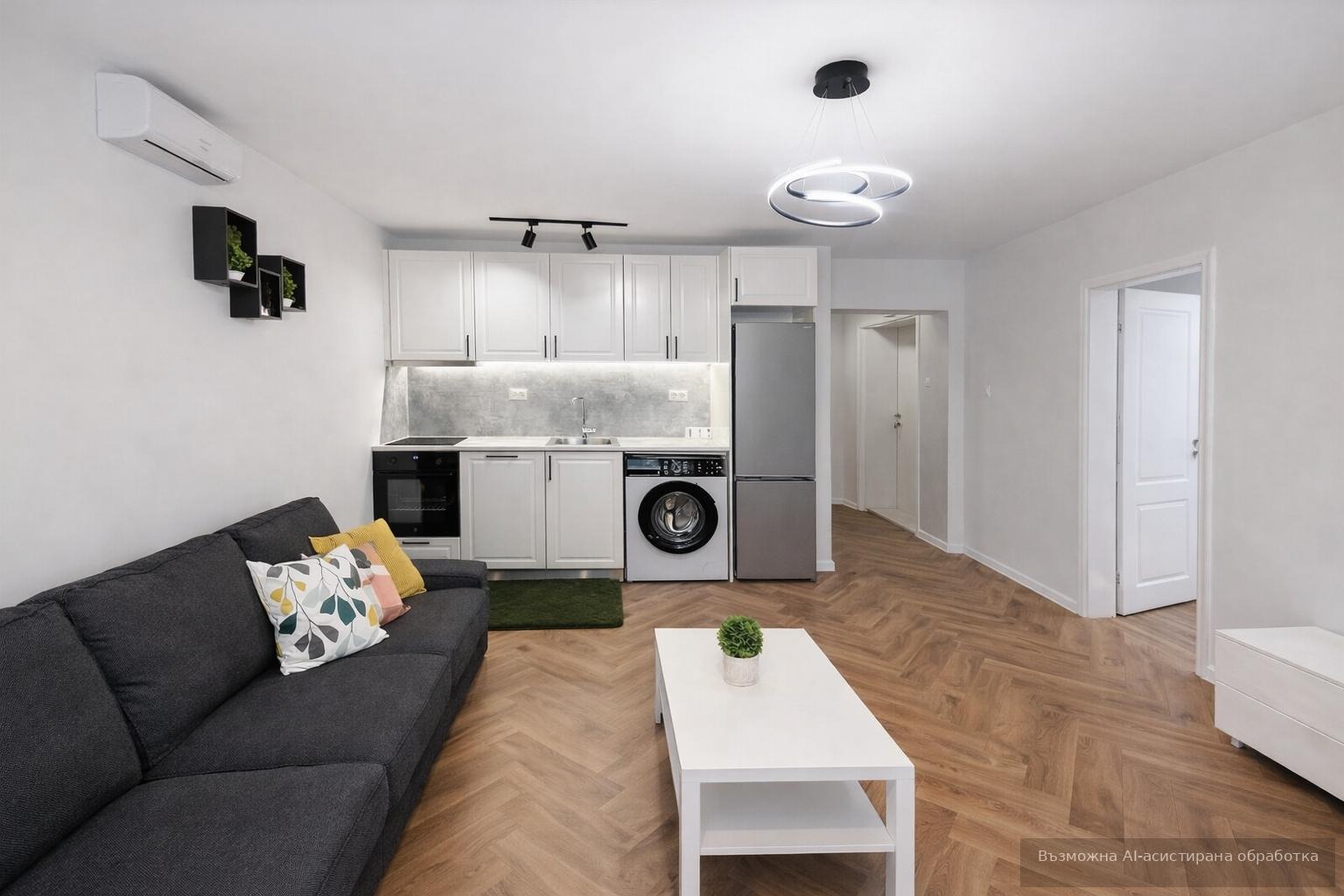 Жилището се предлага напълно обзаведено и оборудвано с всичко необходимо за едно домакинство.