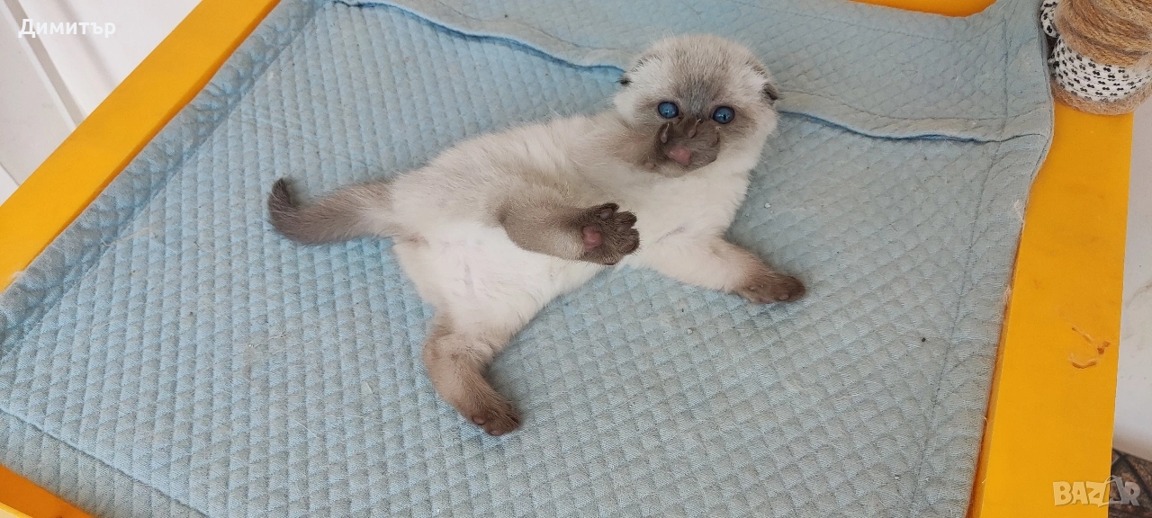 Две мъжки и две женски котета. Родители клепоухи шотландци. Ще са готови към средата на май месец За резервация-0888896581.За всеки мъник има подарък- транспортна чанта, тоалетна- съд и пясък, играчка и купички за храна и вода.