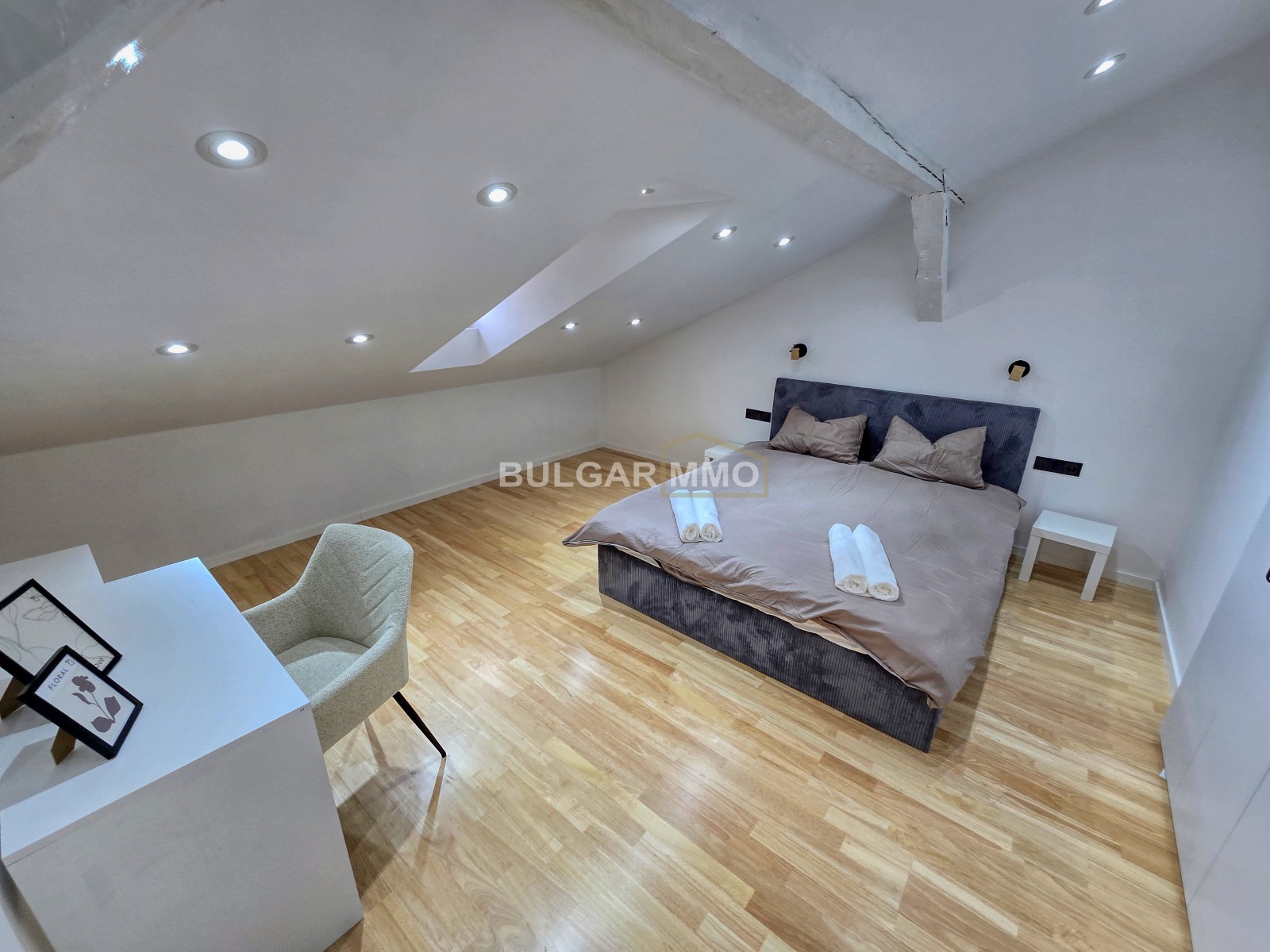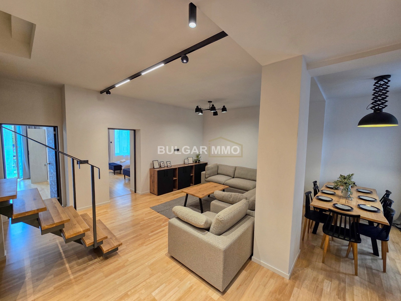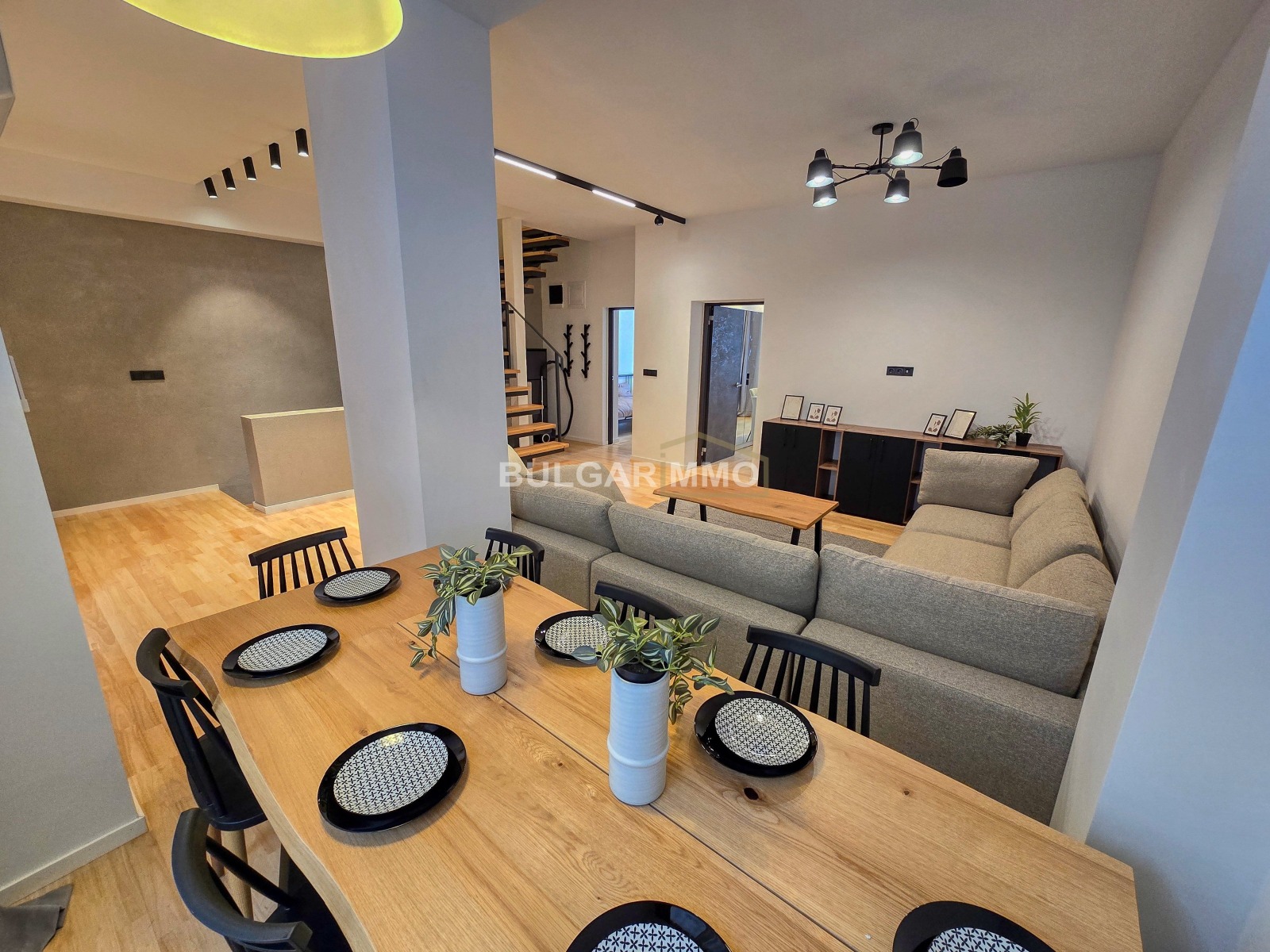 Интериорът е решен в съвременен стил с изчистени линии, топли цветове и модерни акценти, които създават уютна, но същевременно представителна атмосфера. Съчетава се отлично усещането за дом с възможността имотът да бъде използван и като функционално работно пространство. Наличието на големи помещения, отделни стаи и самостоятелен вход превръщат този мезонет в наистина рядко предложение за центъра на София.