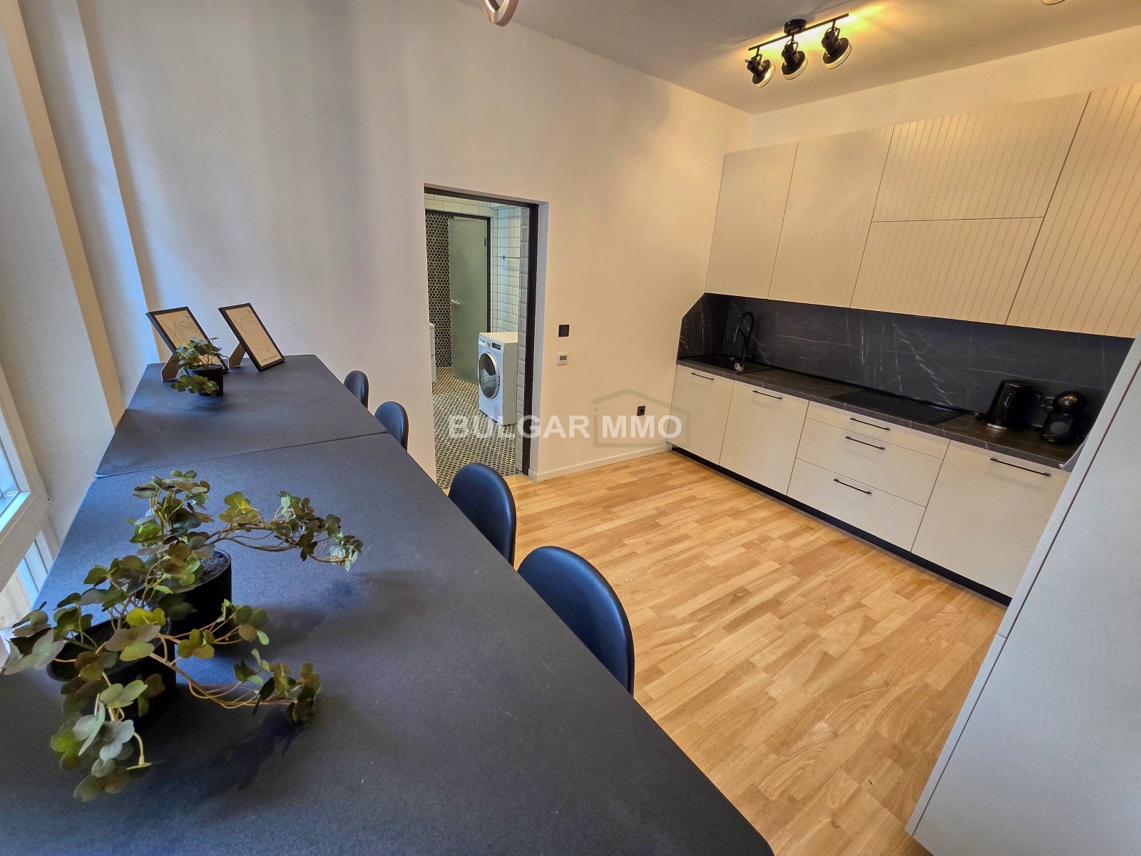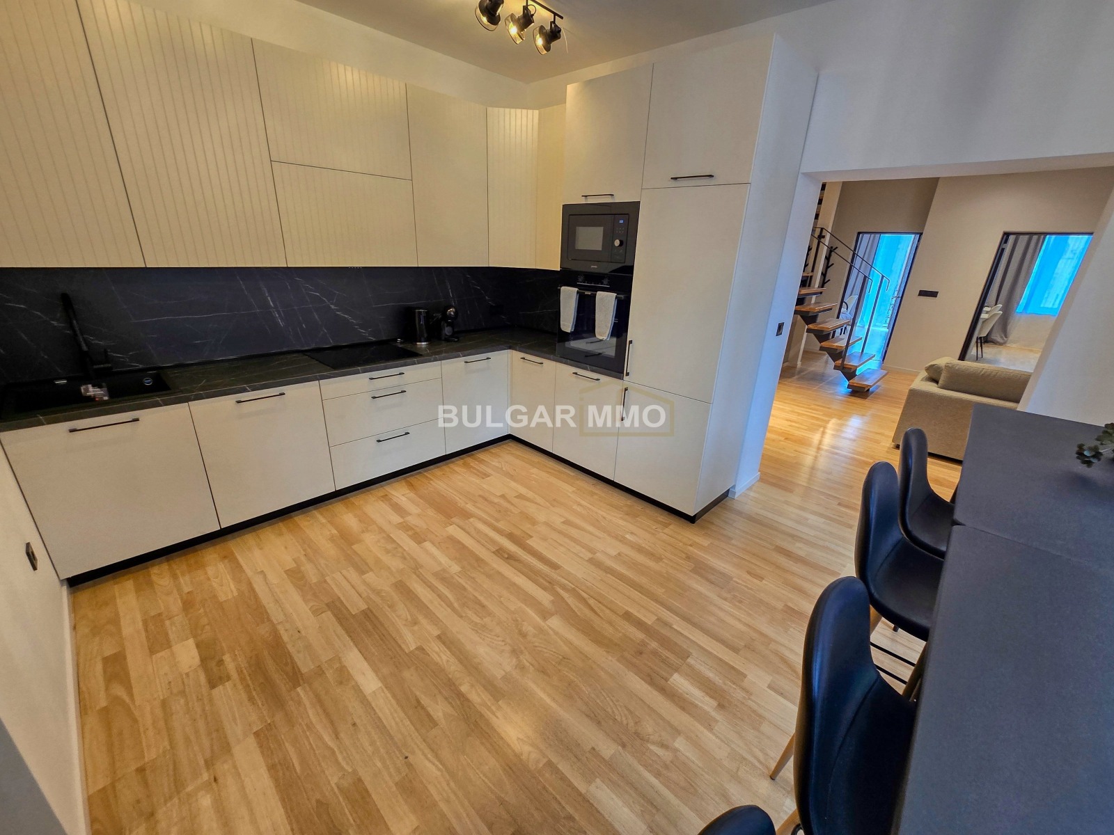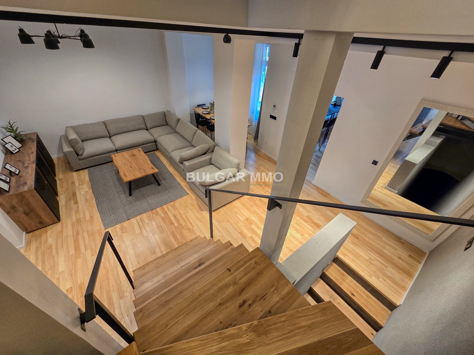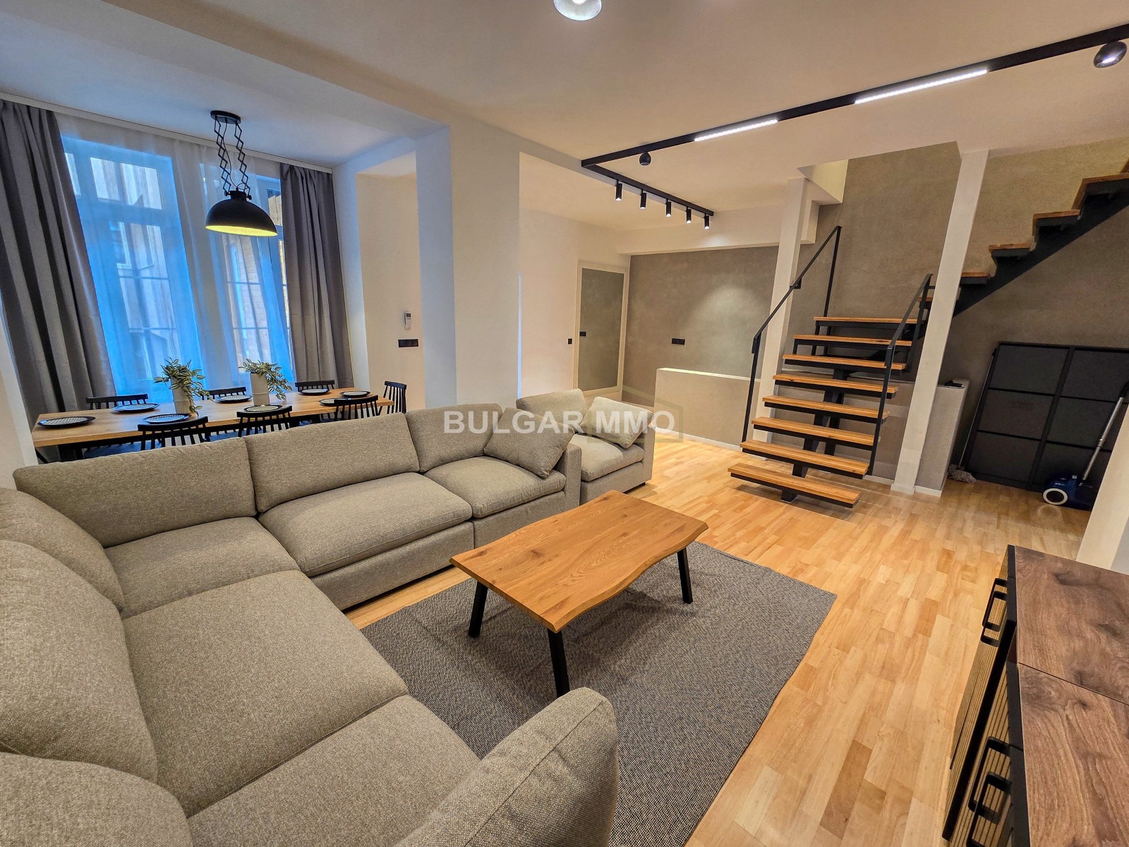 Интериорът е решен в съвременен стил с изчистени линии, топли цветове и модерни акценти, които създават уютна, но същевременно представителна атмосфера. Съчетава се отлично усещането за дом с възможността имотът да бъде използван и като функционално работно пространство. Наличието на големи помещения, отделни стаи и самостоятелен вход превръщат този мезонет в наистина рядко предложение за центъра на София.