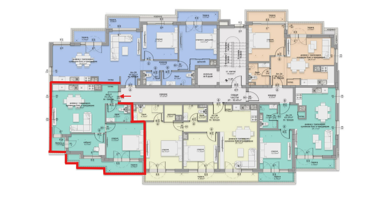 🛋 Дневна: 26.34 кв.м