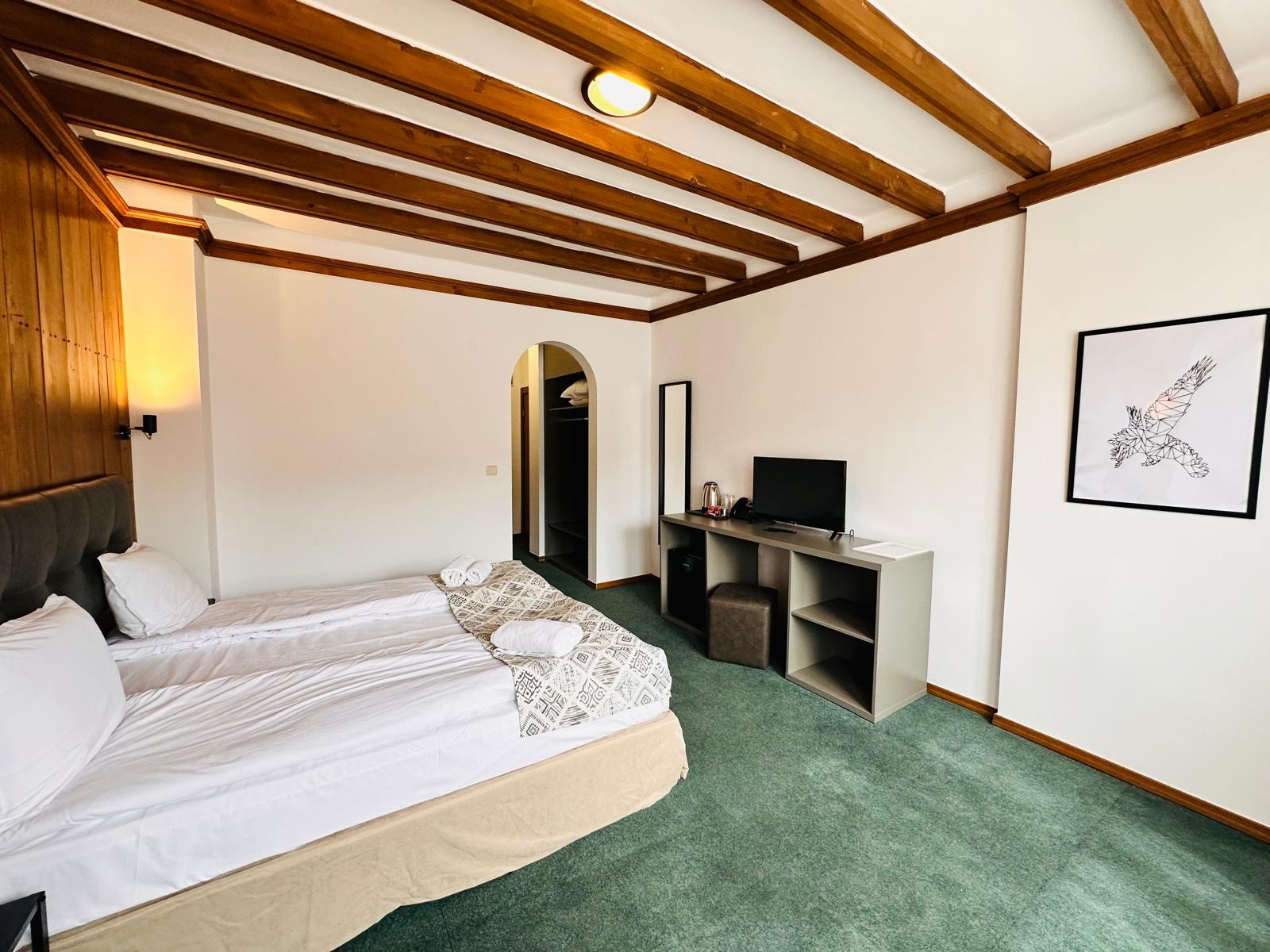 Стаите са обзаведени с маса, мека мебел, телевизор и бюро, нощни шкафчета и двукрилен гардероб.