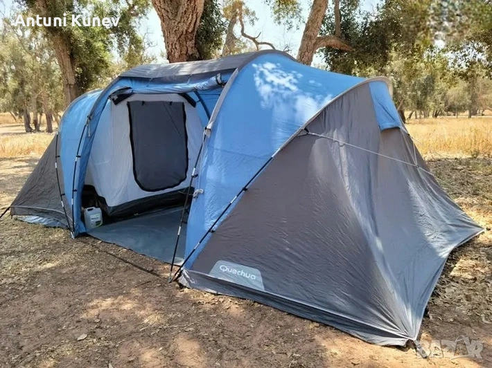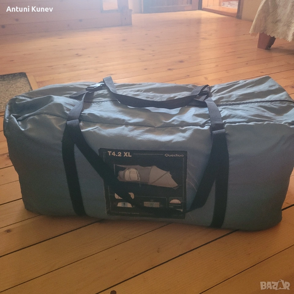 Палатката е в отлично състояние, като нова. Използвана е не повече от три пъти, като Всички елементи са налични, без никакви липси, скъсвания или ремонти. Това е идеалното решение за семейни къмпинг приключения или за хора, които търсят простор и комфорт на открито. Quechua T4.2 XL.