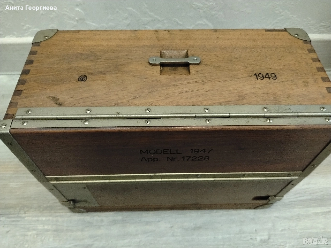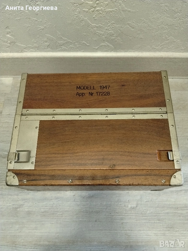 Състояние: Колекционерско – „като нов“. Дървената кутия е изключително запазена, със здрави сглобки тип „лястовича опашка“ и оригинални метални обкови по ъглите.