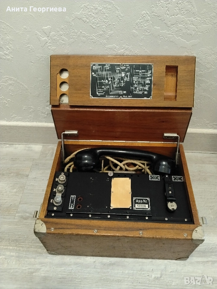 Продавам автентичен швейцарски армейски полеви телефон Armeetelefon Modell 1947, произведен през 1949 година. Апаратът е изключителен образец на швейцарската прецизност и военна техника от средата на миналия век.