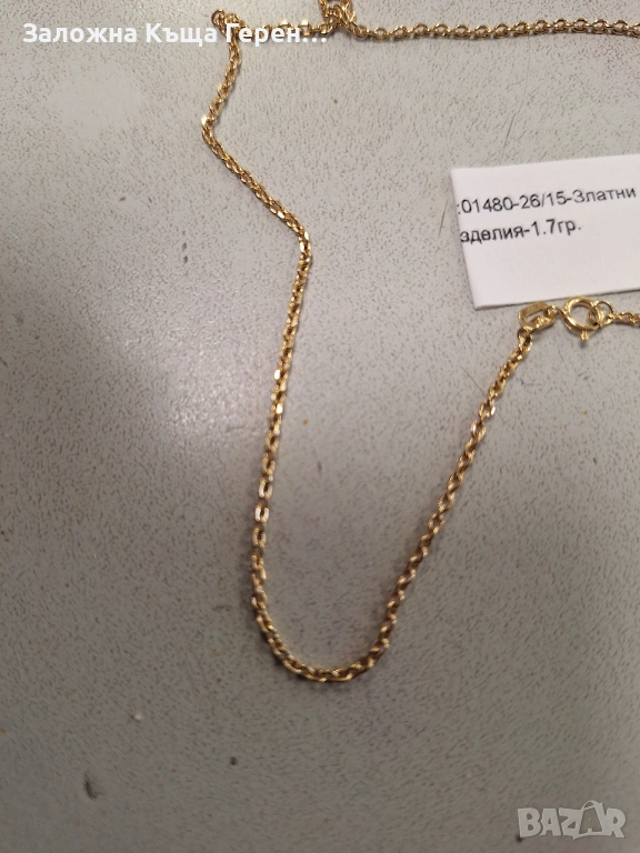 Златен синджир 1,7гр.14к, снимка 1 - Колиета, медальони, синджири - 54254252 Златен синджир 1,7гр.14к, снимка 2 - Колиета, медальони, синджири - 54254252 1/2