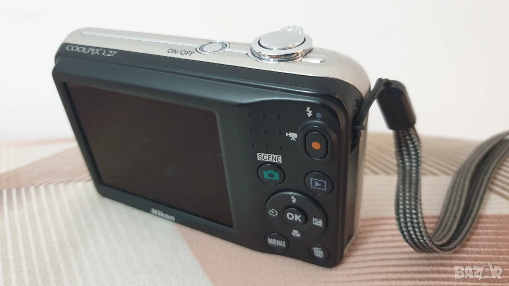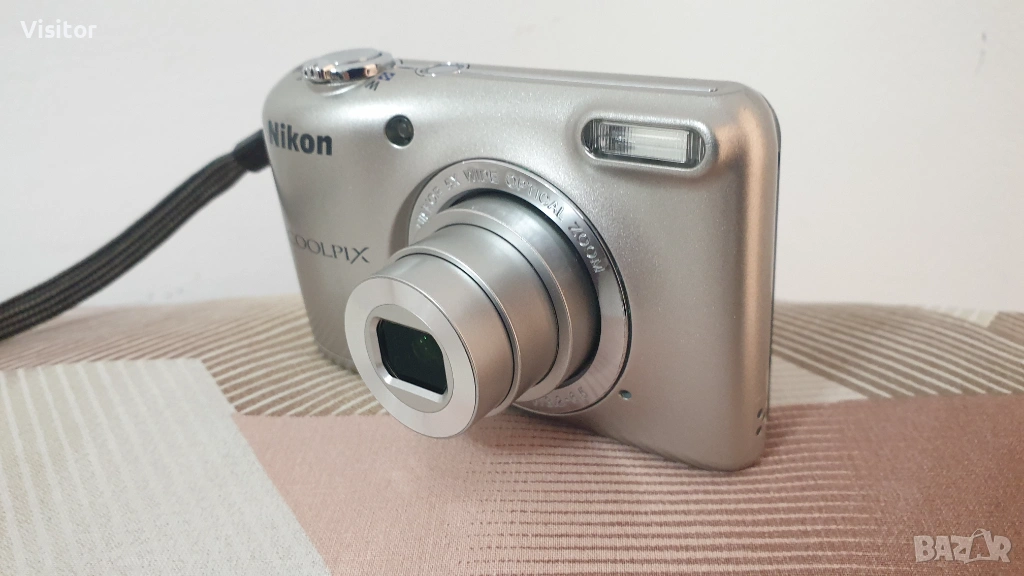 Моля,прочетете обявата докрай и разгледайте снимките на фотоапарата показващи външният му вид и съответно снимките правени с този фотоапарат за да придобиете минимална представа за предлаганото изделие - Nikon Coolpix L27.Фотоапарата е с много запазен външен вид,неразличим от нов с красив сребрист цвят. Пълен комплект - готов за снимки.Лек и удобен за носене.Всички функции работят безотказно.Благодарение на 16.1 Мрх матрица на Никон и обектива,който е с 5х кратно увеличение и фокусно разстояние от 26 - 130 mm прави качествени снимки на близко и далечно разстояние. Картата-памет осигурява направата на 1946 снимки.С помоща на вградената светкавица това фотоапаратче е идеално за направата на снимки при семейни тържества в стая и на други затворени помещения.Фотоапарата работи с най- обикновени батерии от типа АА - има ги във всеки магазин.За предпочитане са алкални или презареждаеми,които издържат по-дълго време.Към фотоапарата предлагам - 2 броя НОВИ алкални батерии,НОВА карта памет 16 GB,кабел за данни с който лесно ще прехвърлите снимките към компютър или лаптоп.Фотоапарата има и връвка за ръка за по лесно носене и правене на снимки и стилна оригинална чантичка за безопасно пренасяне на фотоапарата с логото на NIKON. Разгледайте и снимките правени с това фотоапаратче на дневна светлина и на светкавица в стая.При интерес от Ваша страна изпращам чрез офис на ЕКОНТ с опция - преглед и тест.