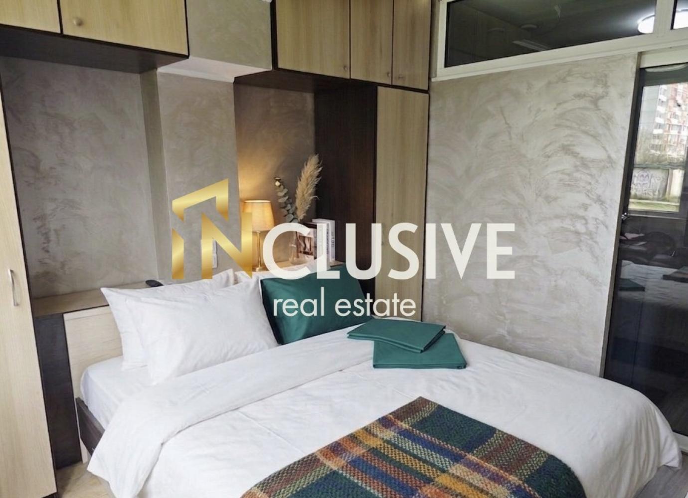 ОБЗАВЕДЕН!!! ПРЕУСТРОЕН!!! ЮЖЕН!!! Инклузив България, представя на Вашето внимание, гарсониера, преустроена в тристаен, находящ се в ж.к. Люлин 5, с площ от 46 кв.м, с усвоената тераса. Разпределението включва коридор с кухненски бокс, баня с тоалетна, дневна, две спални, едната е преходна от дневната. Имотът е напълно обзаведен с всичко необходимо за едно домакинство, а именно: пералня, сушилмя, миялна, двоен хладилник, фурна, котлони и абсорбатор. Отоплението е на ТЕЦ, но има и климатици. Аапраментът е вътрешен с южно изложение и е изключително топъл, а към него има и прилежащо мазе.