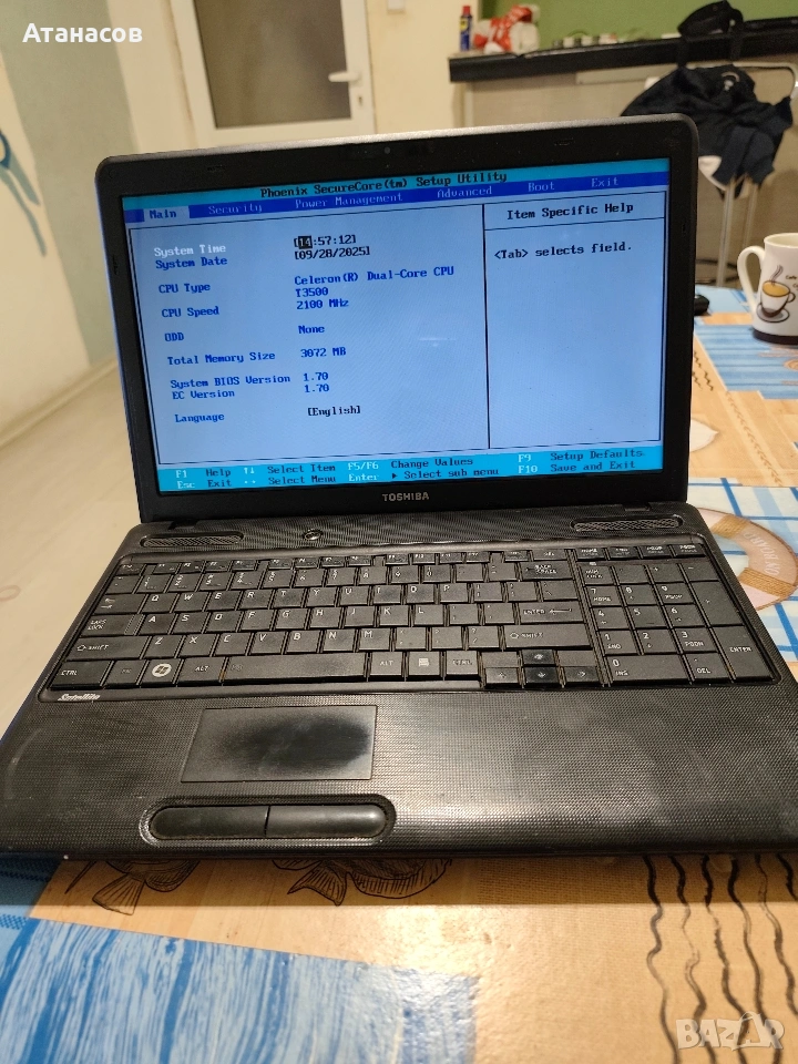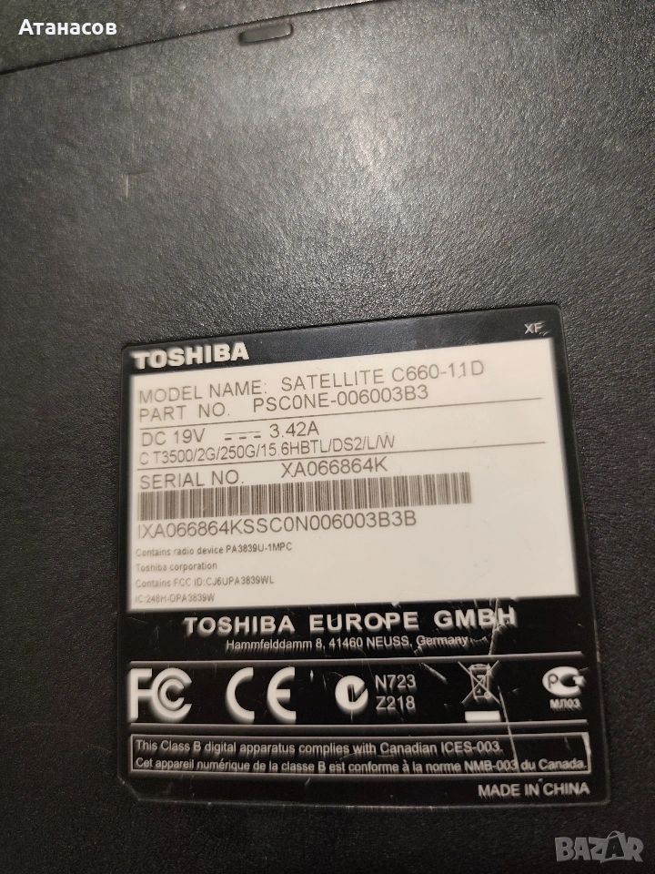 Toshiba Satellite C660 лаптопа работи продава се без хард и зарядно 3гб рам батерия държи около 1 час