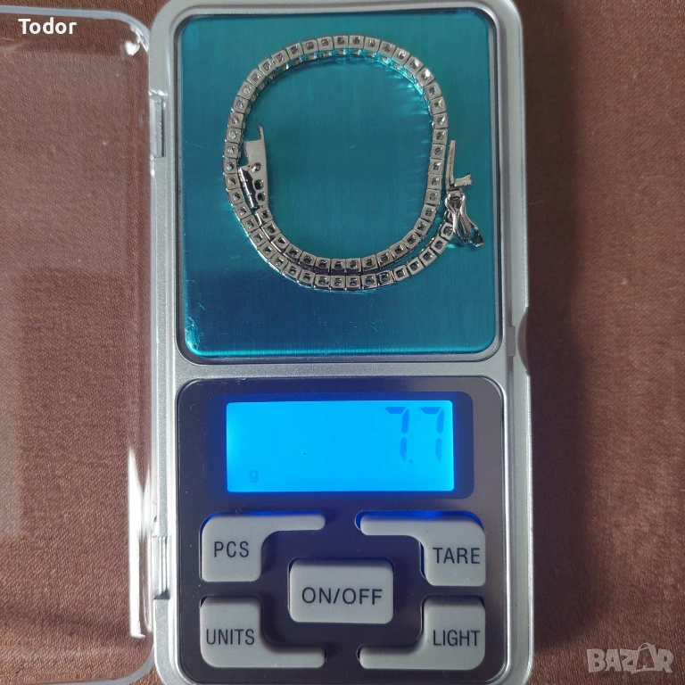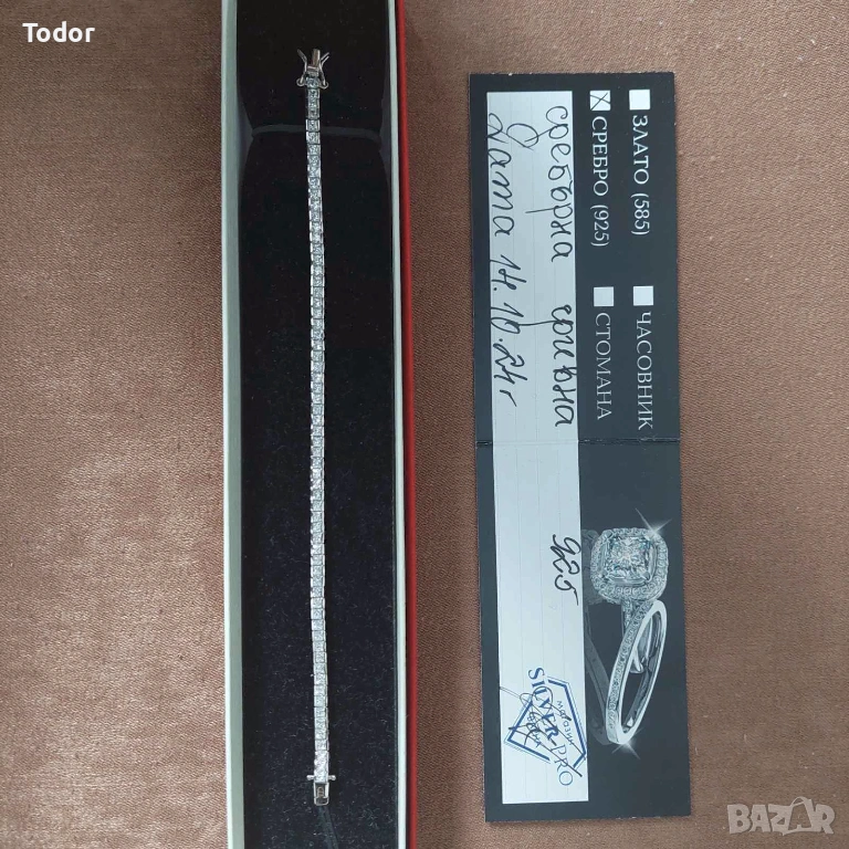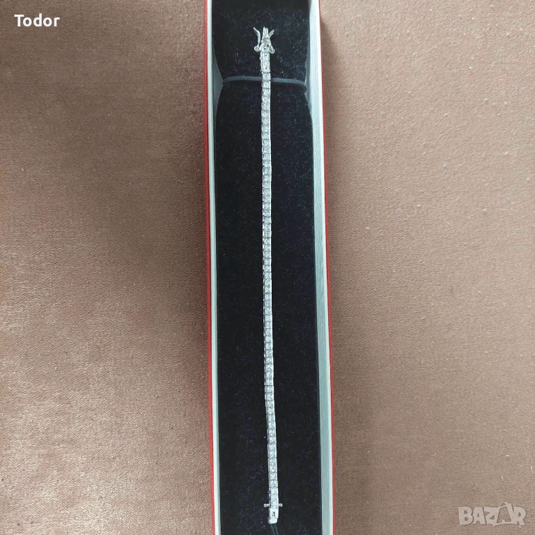 Сребърна Тенис Гривна проба 925 с бели цирконий, ръчна изработка.