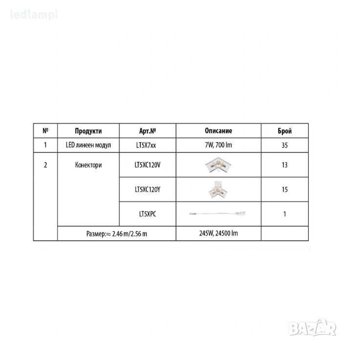 - LED линеен светлинен източник, с мощност 245W и неутрална или студена(4000/6000К) светлинa.
