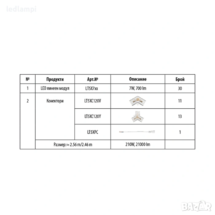- LED линеен светлинен източник, с мощност 210W и студена или неутрална (6000/4000K) светлинa.