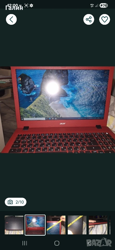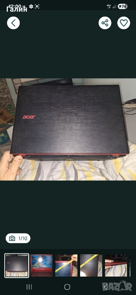 лаптоп Acer с вградена видеокарта.работещо сд.батерията държи два часа и 30 мн на диска с музика. оригинално зарядно. Бартер за всичко предлагате.