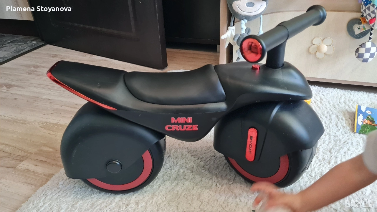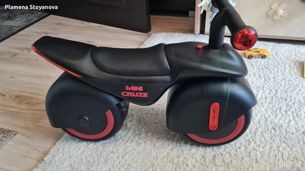 Наличен Гласували: 0, Рейтинг: 0 1 бр. Добави в любими Бърза поръчка Описание Доставка Мини баланс велосипед Mini Cruze на Byox – Първите стъпки към баланса и увереността! Детето ви започва да опознава света на движението? Mini Cruze ,ще въведе всяко дете в света на активната игра, движението и самостоятелността. Основни характеристики: • Възраст: от 18 до 36 месеца • Максимално допустимо тегло - до 30 кг • Широки и стабилни EVA гуми – леки и безшумни, с плавно движение благодарение на вградените лагери • Мека ергономична седалка от PU кожа – за максимален комфорт при каране • Музикална функция с 4 забавни песнички на английски език • Компактен, лек и цветен дизайн – привлекателен и удобен както за детето, така и за родителя Mini Cruze подпомага развитието на: • Баланс и координация – плавният преход към велосипед с педали • Груба моторика – засилва мускулите на крачетата • Самоувереност и ориентация в пространството Mini Cruze, Byox не е просто играчка – той е важна стъпка към активното и уверено детство. Идеален избор за първо колело без педали! Изработен в съответствие с изискванията на европейските стандарти за безопасност: EN 71-1:2014+A1:2018; EN 71-2:2020; EN 71-3:2019+A1:2021 Необходими батерии 3 х AAA, 1.5V