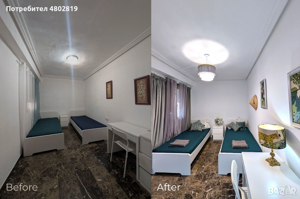 - Сменям осветление, завеси, добавям картини, одеяла и възглавници