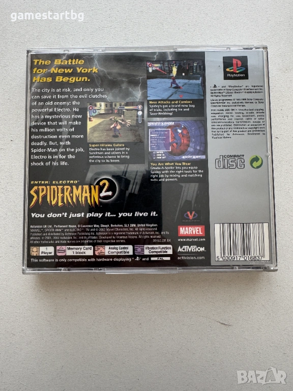 Spiderman 2: Enter Electro за PS1, снимка 1 - Игри за PlayStation - 54256795 Spiderman 2: Enter Electro за PS1, снимка 2 - Игри за PlayStation - 54256795 Spiderman 2: Enter Electro за PS1, снимка 3 - Игри за PlayStation - 54256795 1/3