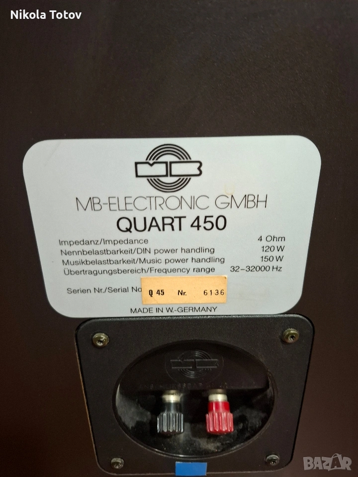 Продават се тонколони MBQUART 450. Напълно работещи. Състоянието се вижда на снимките. Едната капачка на баса е сменена. Намират се в Пловдив. Цена 150 евро. За повече информация и снимки ми пишете на лс или звъннете на посочения номер 089 692 8376 .