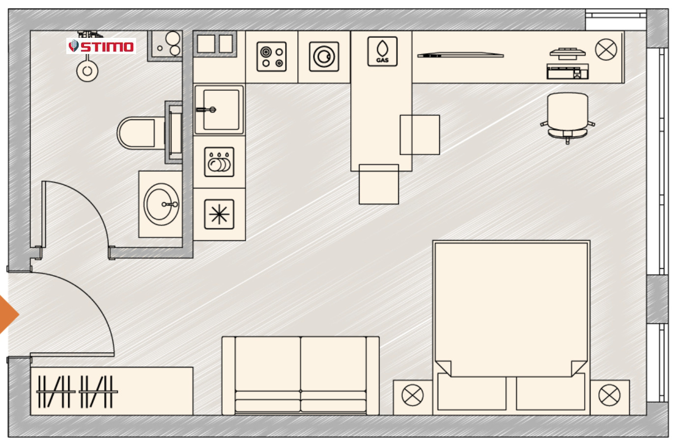 Стимо Инвест продава еднопространствено студио в нова сграда с Разрешение за ползване - акт 16 (ноември 2025г.) в ж.к.Малинова долина, на метри от НСА. Студиото е със застроена площ 36 кв.м., разположено на четвърти жилищен етаж над гаражи и се състои от: входно антре, всекидневна с кухненски и спален кът и баня с тоалетна. Помещението е просторно, с френски прозорци и много светлина. Изложението е северозапад, с гледка към вътрешен озеленен двор и добри отстояния от съседите сгради. Прилежащо е складово помещение 2кв.м., разположено в сутерена на сградата. Сградата е газифицирана, като допълнително са предвидени изводи за климатик за максимален комфорт. Към апартамента се продава открито паркомясто във вътрешния двор на сградата на цена от 20000 евро.