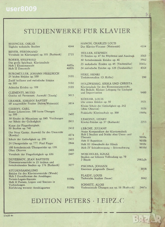 Ferd. Beyer - ''Vorschule Im Klavierspeil - Opus 101'' - 1986 → Обява 54257034
