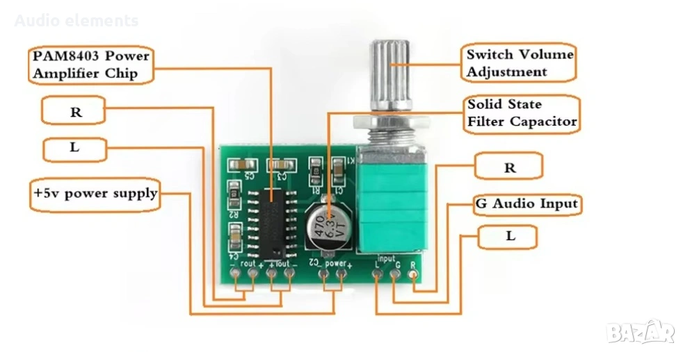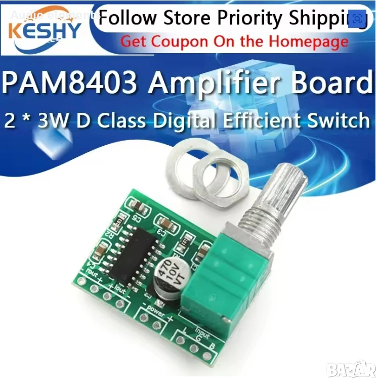 PAM8403 модул цифров усилвател платка 2 * 3W клас D, снимка 1 - Ресийвъри, усилватели, смесителни пултове - 54257056 PAM8403 модул цифров усилвател платка 2 * 3W клас D, снимка 2 - Ресийвъри, усилватели, смесителни пултове - 54257056 PAM8403 модул цифров усилвател платка 2 * 3W клас D, снимка 3 - Ресийвъри, усилватели, смесителни пултове - 54257056 1/3