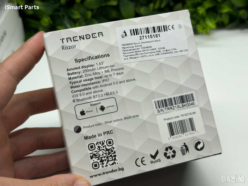 Trender Razor разполага с цветен AMOLED дисплей с висока разделителна способност, тънка рамка и максимално използване на цялото пространство върху екрана. Резолюцията 466x466 пиксела осигурява детайлно и реалистично изображение с ярки цветове и отлично качество.