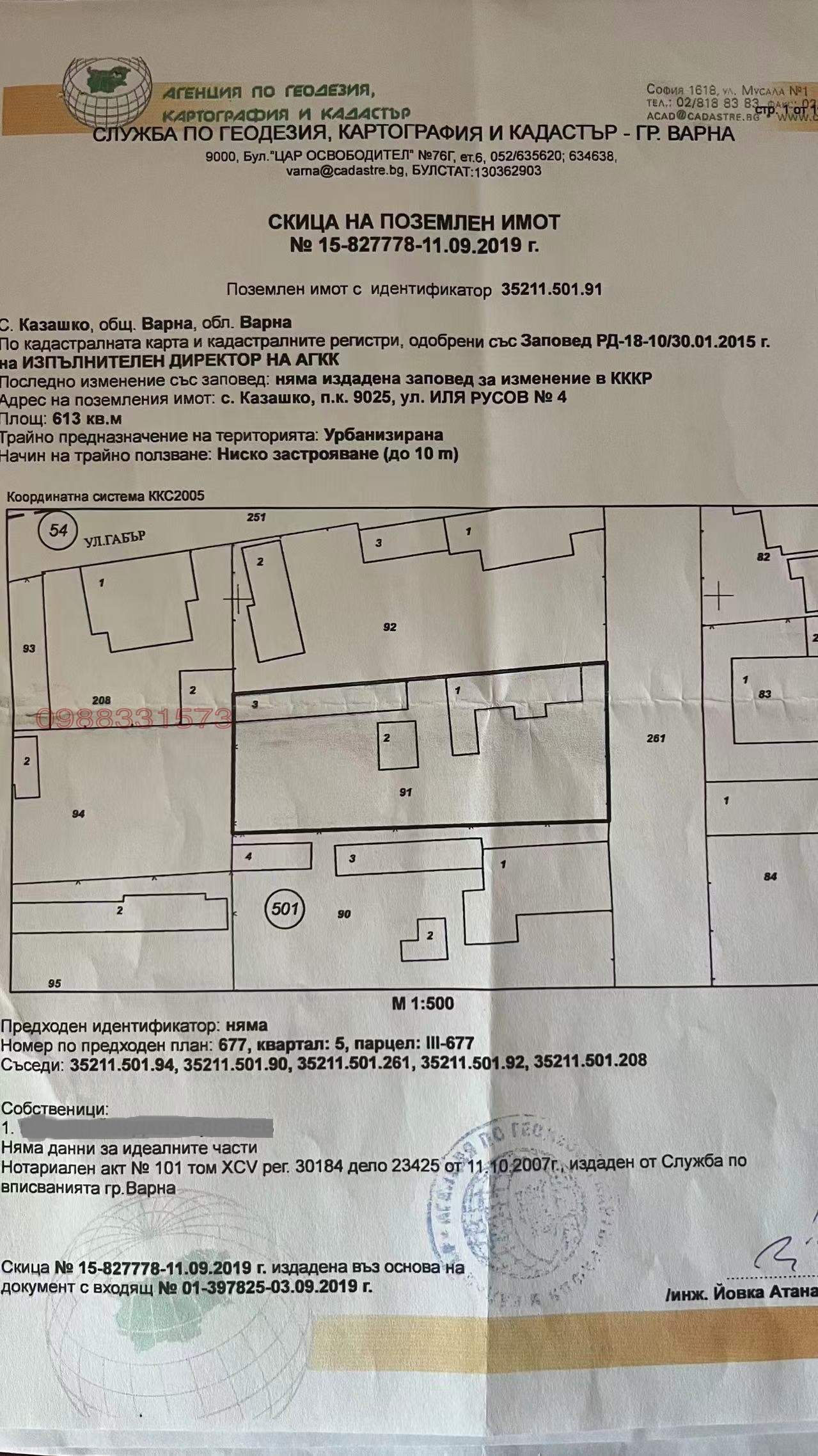 Продавам равен имот в регулация (УПИ) с площ от 615 кв.м. в село Казашко. Имотът се продава директно от собственик (без комисионна за купувача). Напълно подготвен е за строителство или инвестиция с всички необходими документи.
