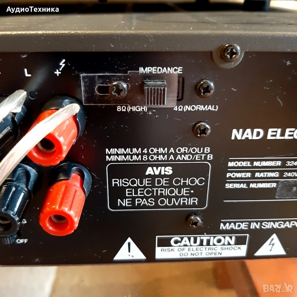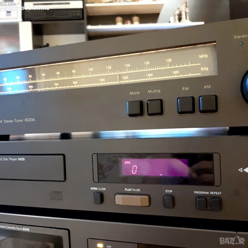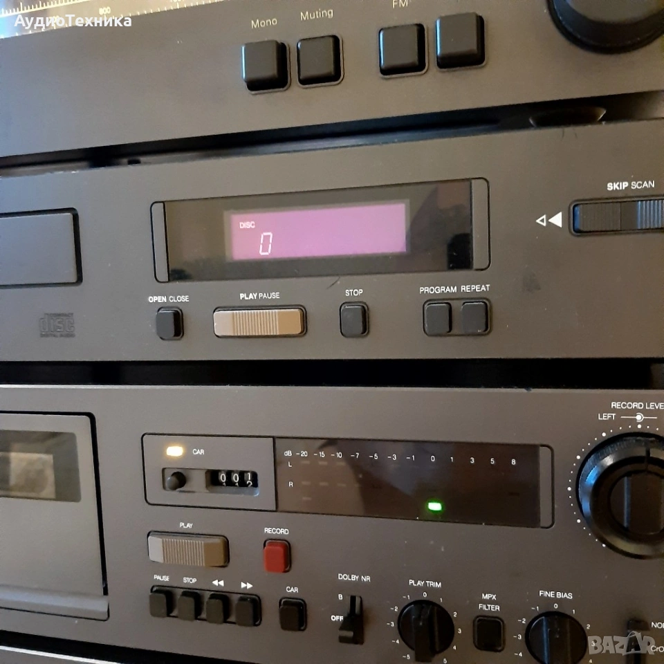 Всичко е минало профилактика Дека е ревизиран изцяло,нови ремъци и т.н Тунера също е ревизиран Усилвателя почистен Плейъра чете каквото му сложиш/почистен. Дадени са над 300 лв за ревизията им,така че цената е крайна! Който не му харесва цената, моля да подминава. Тая система дълго време няма да има нужда от каквато и да е профилактика. Предпочитам лично предаване за Пловдив. ПРАЩАМ САМО СРЕЩУ КАПАРО! NAD 4020A е рационално проектиран тунер с умерени цени, чиято производителност на повечето места и с повечето излъчвания е звуково идентична с тази на много по-скъпи и сложни тунери. Спецификации Тип: моно / стерео тунер Настройка на обхвати: FM, MW Скала за настройка: аналогова Обхват на FM настройка: 88 до 108 MHz Чувствителност: 1.9uV (FM), 250uV (MW) Съотношение сигнал / шум: 70 dB (FM) Изкривяване: 0,3% (FM) Селективност: 65 dB (FM), 30 dB (MW) Честотна характеристика: 30Hz до 15kHz (FM) Размери: 420 х 96 х 240 мм Тегло: 4,2 кг Описание Плейър с фиксиран изход с LCD дисплей за намалено изкривяване, повторение и програмирано възпроизвеждане. Спецификации Формат на диска: CD Цифров преобразувател: MN6471M, MASH 18-bit, 4 x oversampling CD механизъм: KSS-210A Честотна характеристика: 5Hz до 20kHz Динамичен обхват: 98dB Съотношение сигнал / шум: 110dB Разделяне на канали: 80dB Общо хармонично изкривяване: 0,0025% Линеен изход: 2V Размери: 420 х 90 х 260 мм Тегло: 4,1 Спецификации Дек Тип: 2 глави, единична компактна касета Track System: 4-пистова, 2-канална стерео Скорост на лентата: 4,75 см / сек Глави: 1 x запис / възпроизвеждане, 1 x изтриване Тип лента: тип I, CrO2, метал Намаляване на шума: B, C Разширение за главата: HX Pro Честотен отговор: 35Hz до 18kHz (метална лента) Съотношение сигнал / шум: 70 dB (dolby C) трептене: 0,05% Общо хармонично изкривяване: 1,2% Вход: 40mV (линия) Изход: 0.5V (линия) Размери: 420 х 271 х 122 мм Тегло: 4,5 кг NAD 3240PE Спецификации Работи на 4 и на 8 ома Изходна мощност: 40 вата на канал в 8Ω (стерео) Честотна характеристика: 20Hz до 20kHz Общо хармонично изкривяване: 0,03% Фактор на затихване: 50 Входна чувствителност: 3.5mV (MM), 160mV (линия) Съотношение сигнал / шум: 76dB (MM), 102dB (линия) Размери: 420 x 108 x 380 мм Тегло: 6.7кг