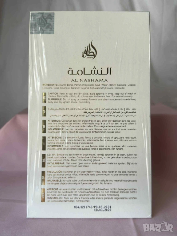 Lattafa Al Nashama Caprice - разкрива чувствено изживяване, обгръщайки ви в комбинация от аромати, внимателно изработени, за да повдигнат сетивата ви и да повишат увереността ви. Нотките на аромата свидетелстват за неговата комплексност и гъвкавост. Ароматни и свежи, лавандуловите нюанси осигуряват успокояващо и вечно качество, докато инфузия от свежи подправки добавя съблазнителен привкус, който ободрява сетивата. Дървесните нотки осигуряват топъл и заземяващ характер, създавайки перфектен баланс с цитрусови елементи, които добавят яркост и жизненост. Нюансите на билките добавят естественост и земност и завършват пътуването на аромата с изтънченост.