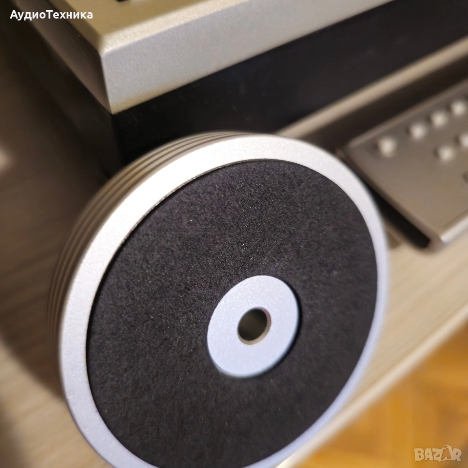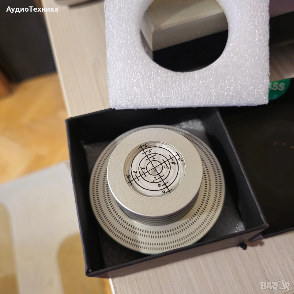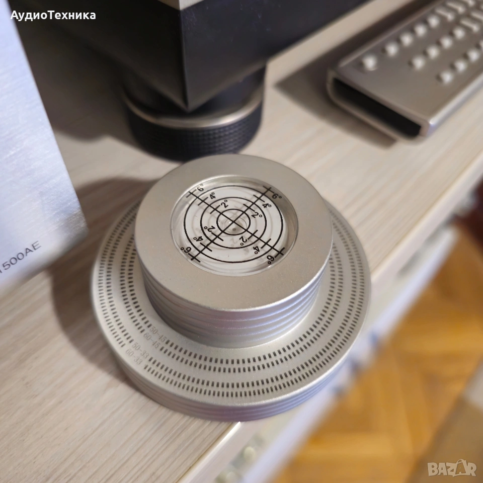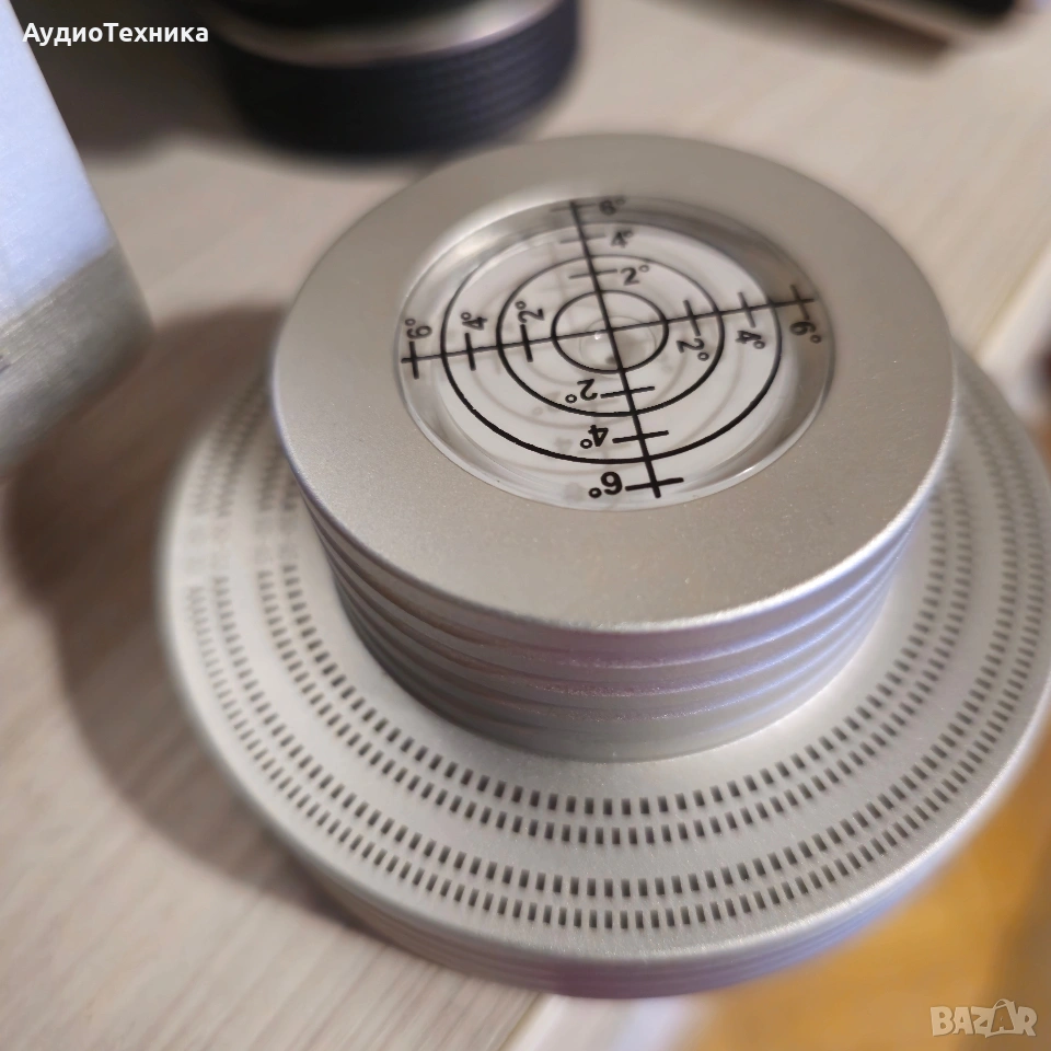 ПРОМО/Клампа Aluminum Stabilizer with Bubble Level Silver Cтабилизатор Това е автоматичен превод, генериран от софтуер: The Алуминиев стабилизатор Record с балонче ниво е първокласен аксесоар, предназначен да подобри производителността на вашия грамофон. Този стабилизатор е изработен от висококачествен алуминий и разполага с вграден балонен нивелир, предлагащ отлична издръжливост и функционалност. Материал : Изработен от висококачествен алуминий, осигуряващ здрава и издръжлива конструкция. функция : Помага за стабилизиране на виниловата плоча върху грамофона, като намалява вибрациите и подобрява качеството на звука. Балонче ниво : Вграденото балонно ниво гарантира, че вашият грамофон е перфектно балансиран, подобрявайки цялостното аудио изживяване. Дизайн : Елегантният дизайн добавя нотка изтънченост към настройката на вашия грамофон. Изпълнение : Подобрява цялостното аудио изживяване, като осигурява по-стабилно и последователно възпроизвеждане. Този стабилизатор е задължителен за всеки почитател на винила, като гарантира запазването на качеството на звука и удължения живот на вашите записи. Като добавите Record Aluminium Stabilizer with Bubble Level към вашата настройка, вие ще издигнете вашето изживяване при възпроизвеждане на винил до нови висоти.