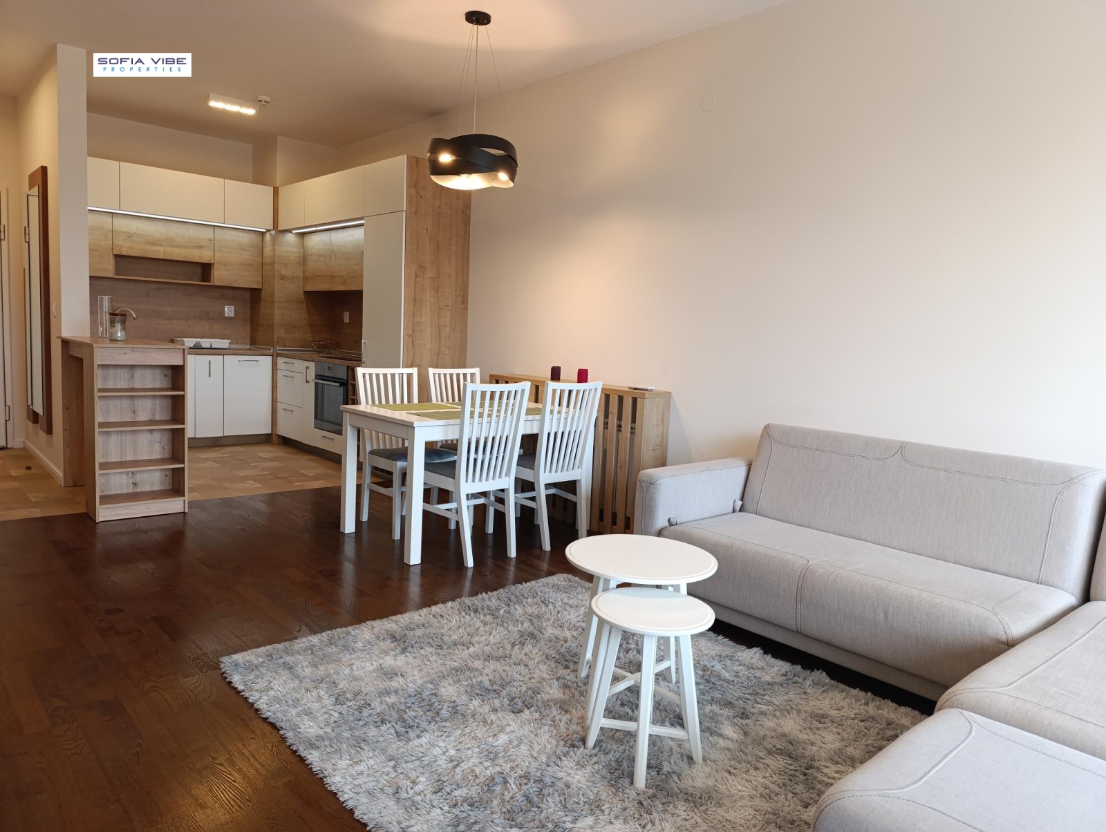 Sofia Vibe Properties offers a stylish and luxuriously furnished one-bedroom apartment, located in the Lozenets district, in the Sofia Land area, within a modern gated complex featuring well-maintained common areas, controlled access, and 24/7 security.