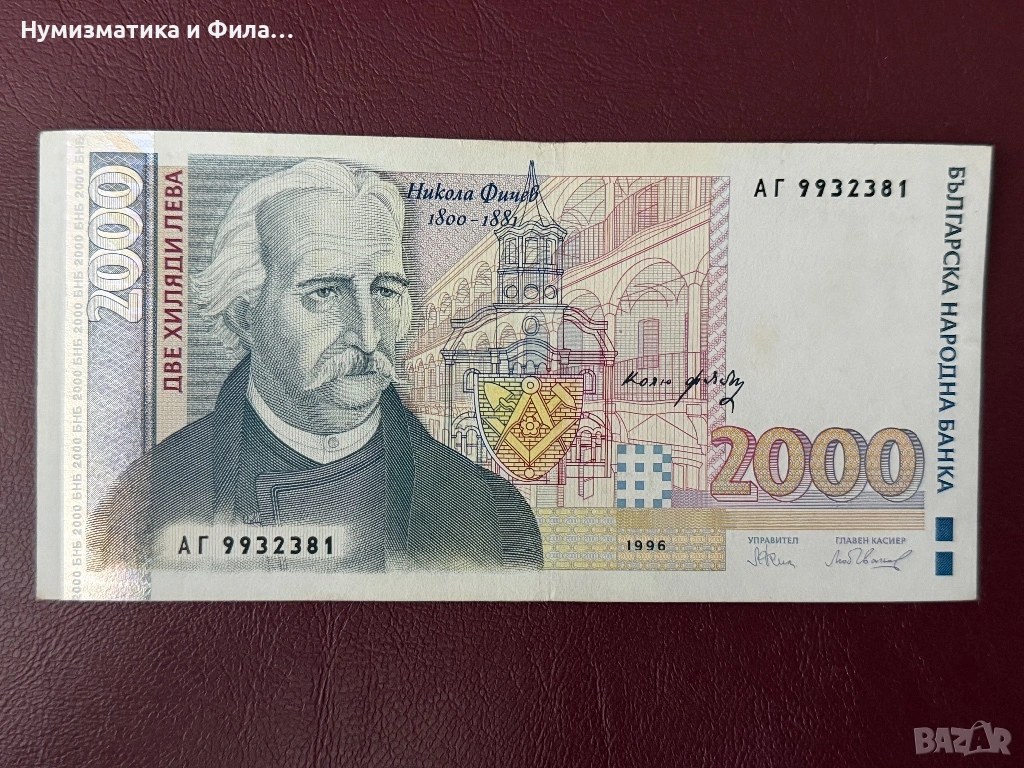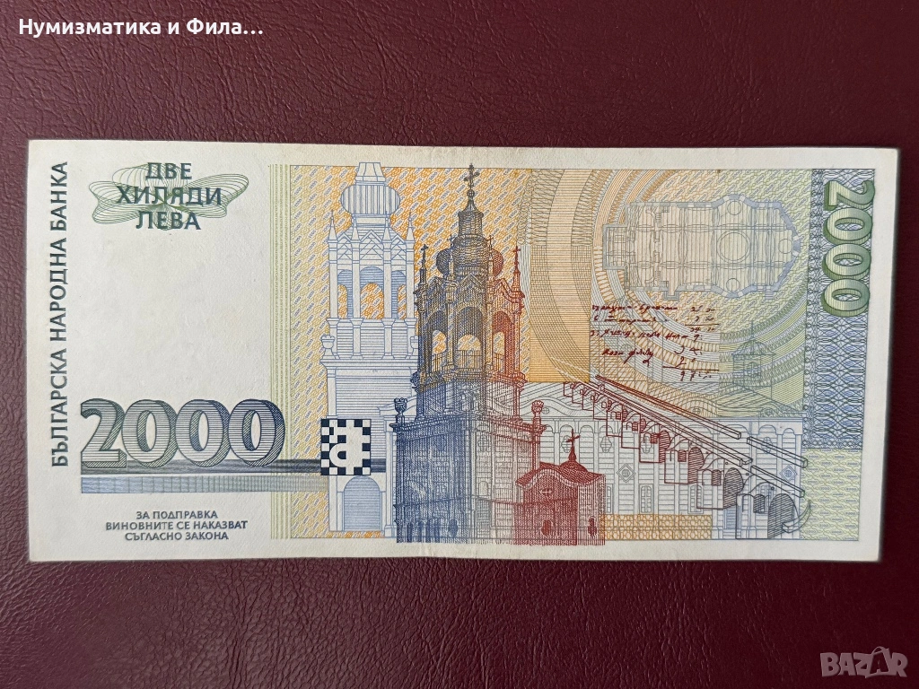 Продавам българска банкнота от 2000 лева, емисия 1996 година с образа на Кольо Фичето.
