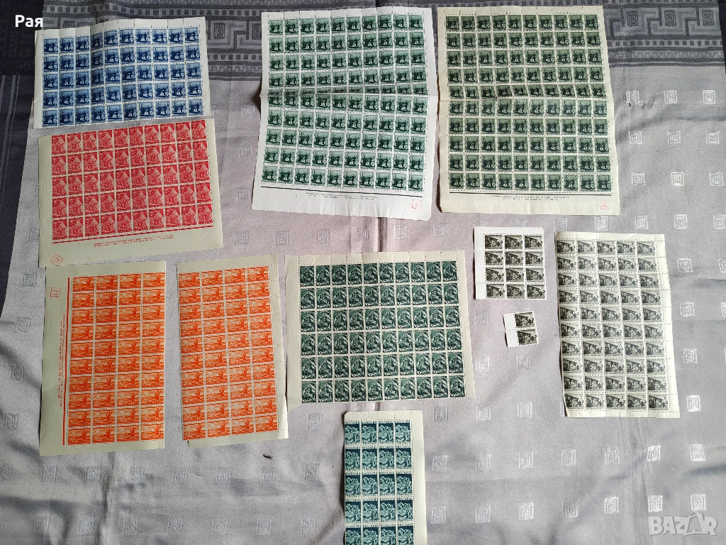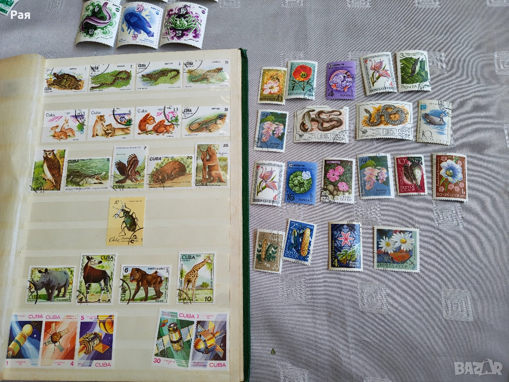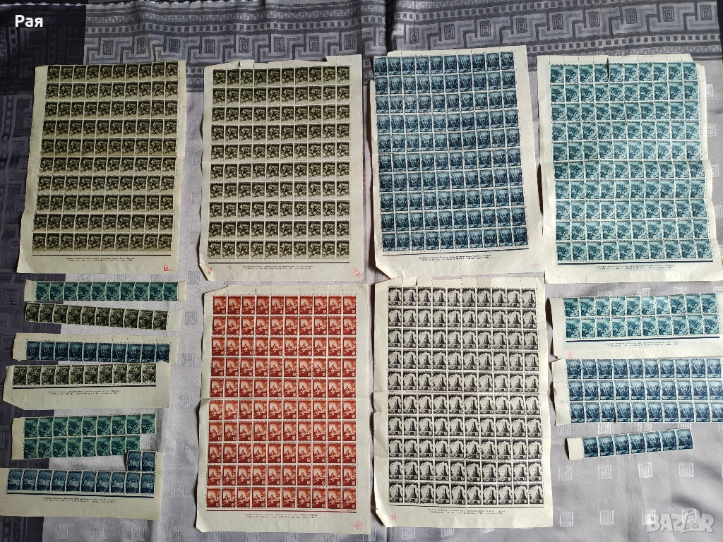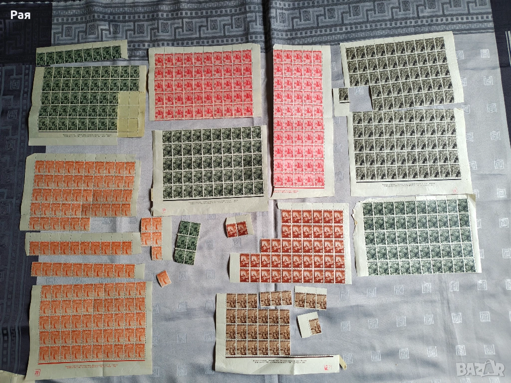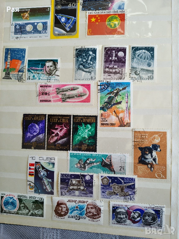 Голям брой цели пощенски листа и големи блокове от Царство България и Класьор и миксове) с марки от СССР, Куба, Виетнам, България, ГДР и Западна Европа. Теми: Космос, Животни, Птици, Спорт, Влакове и Кораби.