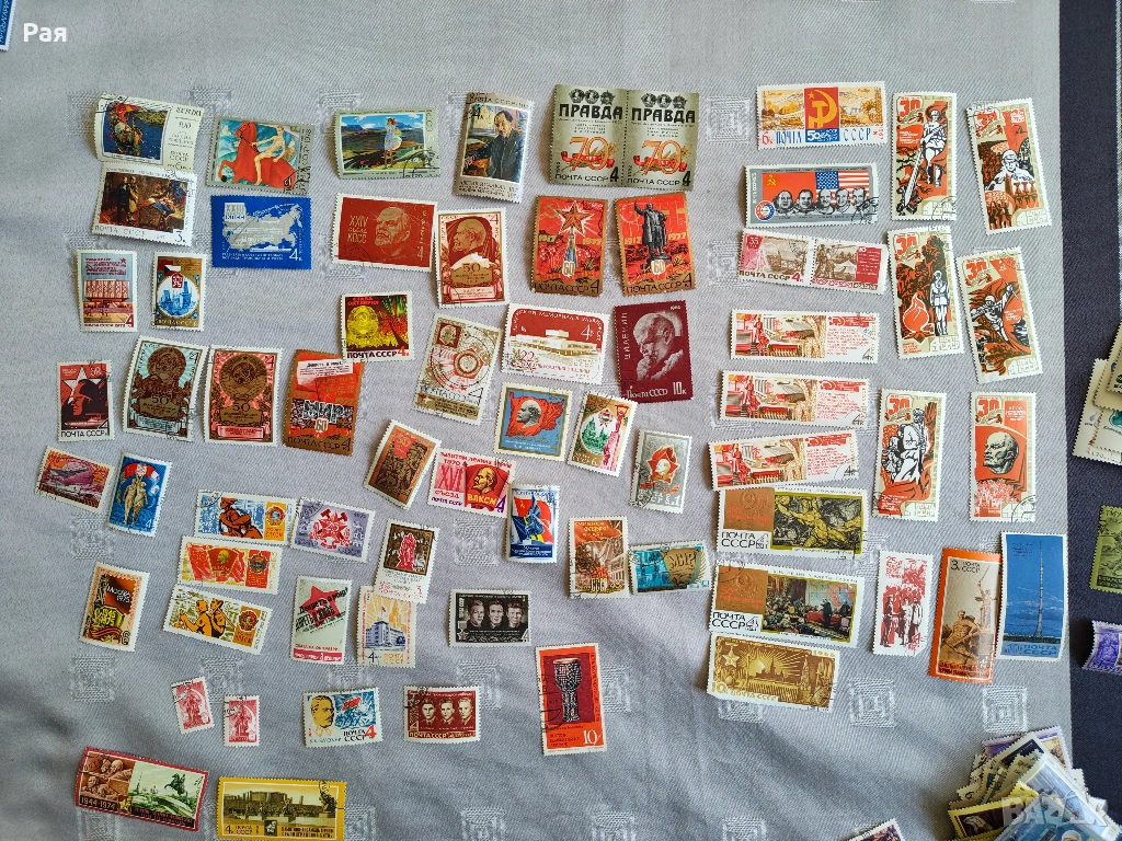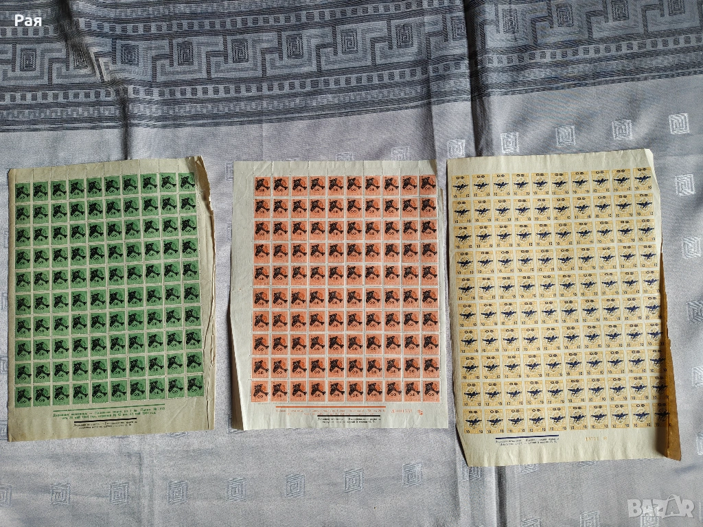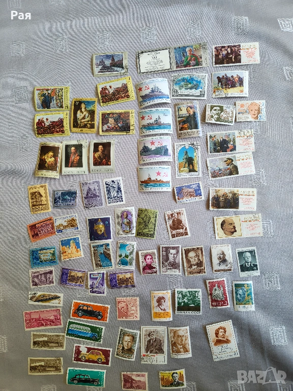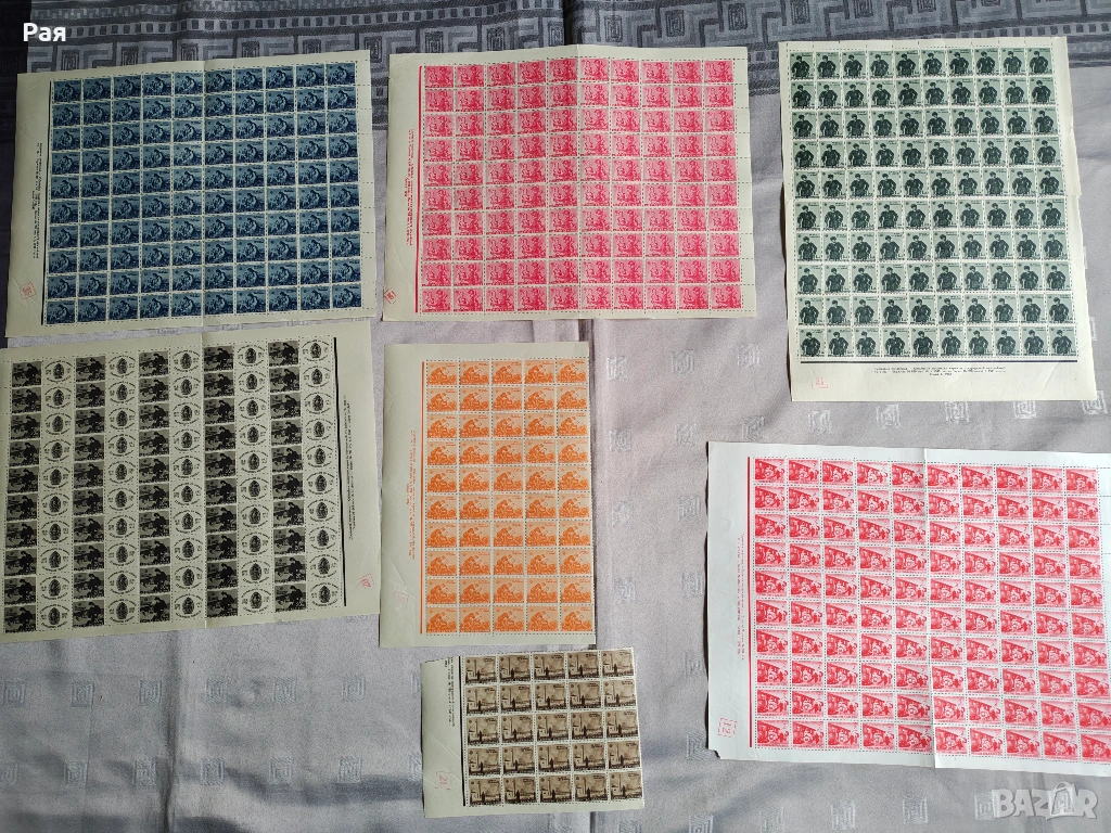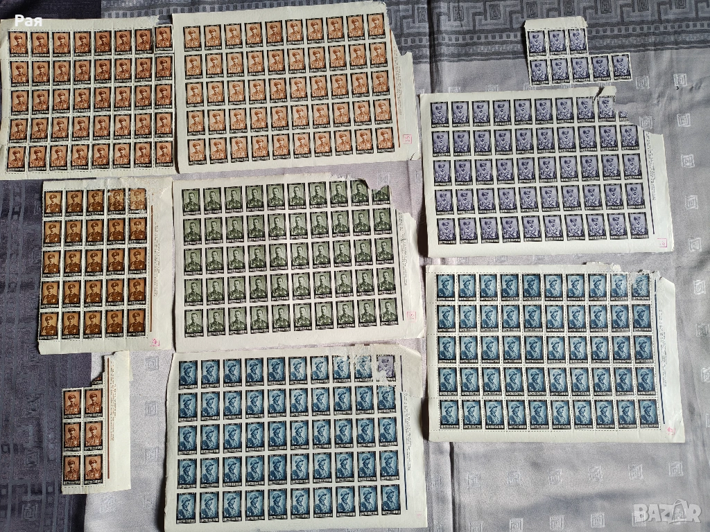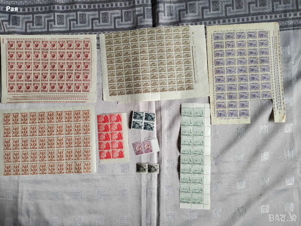 Голям брой цели пощенски листа и големи блокове от Царство България и Класьор и миксове) с марки от СССР, Куба, Виетнам, България, ГДР и Западна Европа. Теми: Космос, Животни, Птици, Спорт, Влакове и Кораби.