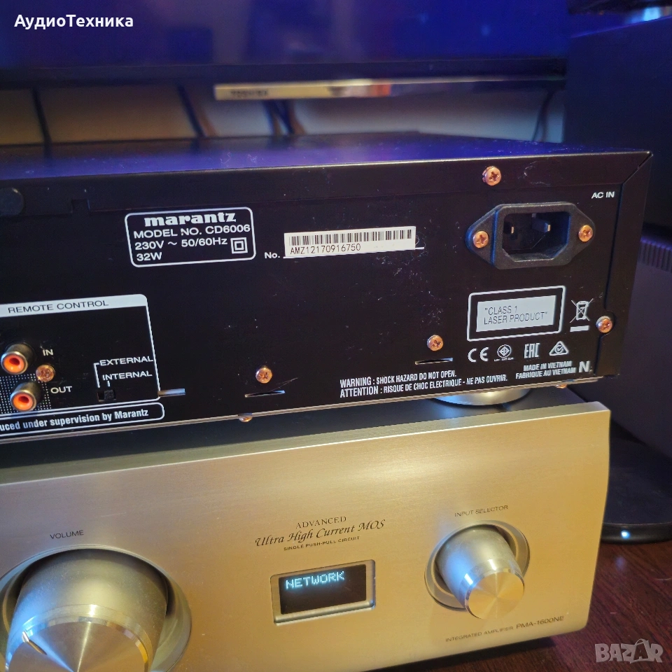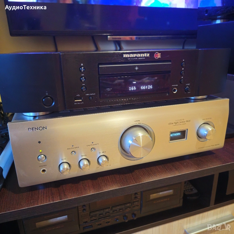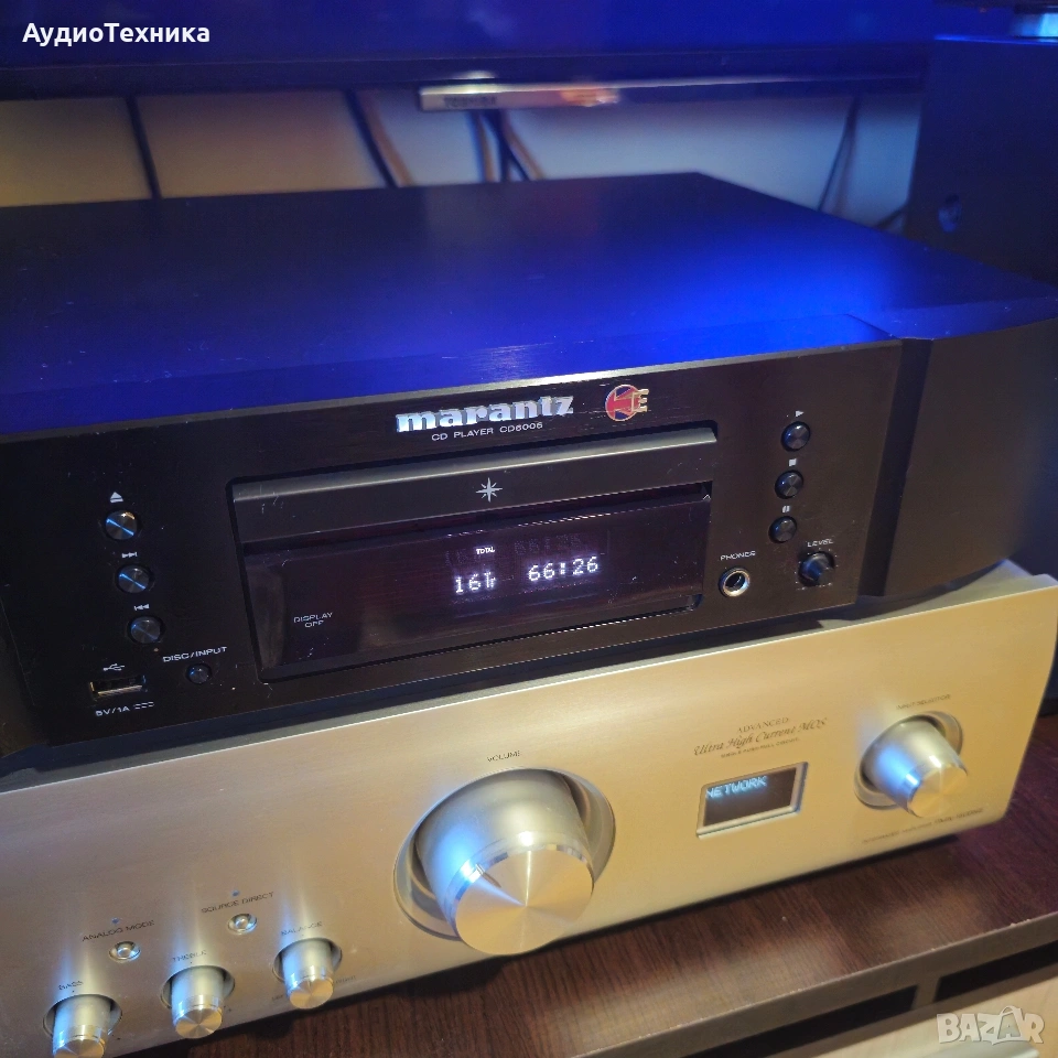DAC Cirrus Logic CS4398 DAC резолюция 24-bit / 192kHz Аналогов изход RCA stereo Дигитални изходи Optical + Coaxial Headphone out Да, с усилвател HDAM-SA2 Регулиране слушалки Да Честотен диапазон 2Hz – 20kHz Dynamic Range 100 dB Signal to Noise Ratio 110 dB Консумация 32W Standby 0.3W Размери 440 x 340 x 105 mm Тегло 6.5 kg Как звучи Детайлен и чист звук Топъл и музикален характер Много добри среди и вокали По-мек висок диапазон, без острота Отличен ритъм и сцена What Hi-Fi го оценяват като един от най-добрите около £500 в класа си. What Hi-Fi? Най-добра комбинация Идеален партньор за Marantz PM6006 UK Edition – визуално и звуково пасват перфектно.