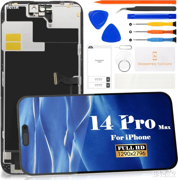 Продавам дисплей за iPhone 14 Pro Max – марка SRJTEK. Подходящ за подмяна на счупен или нефункциониращ екран.