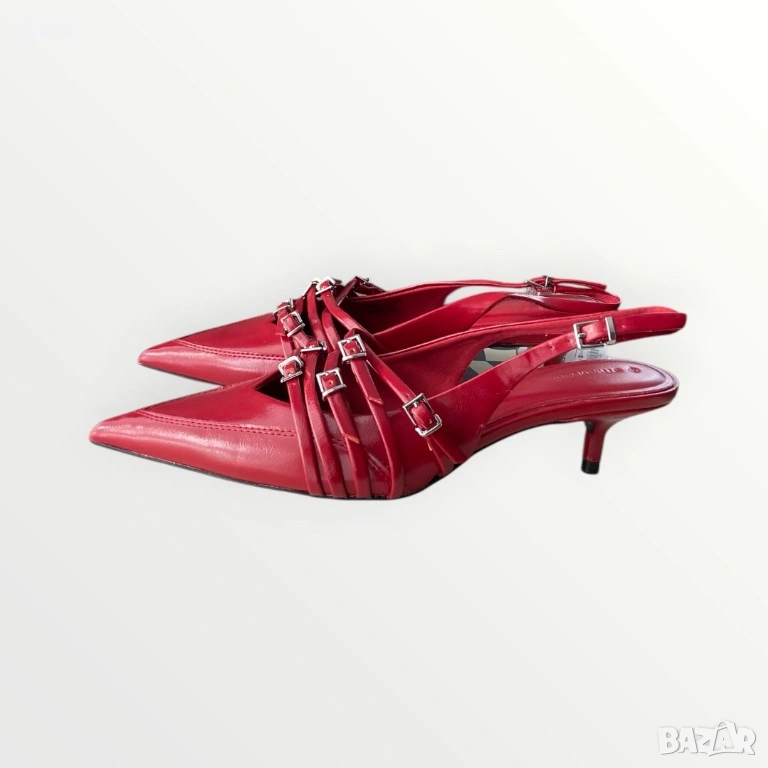 Red buckle slingback kitten heels → Обява 54259333
