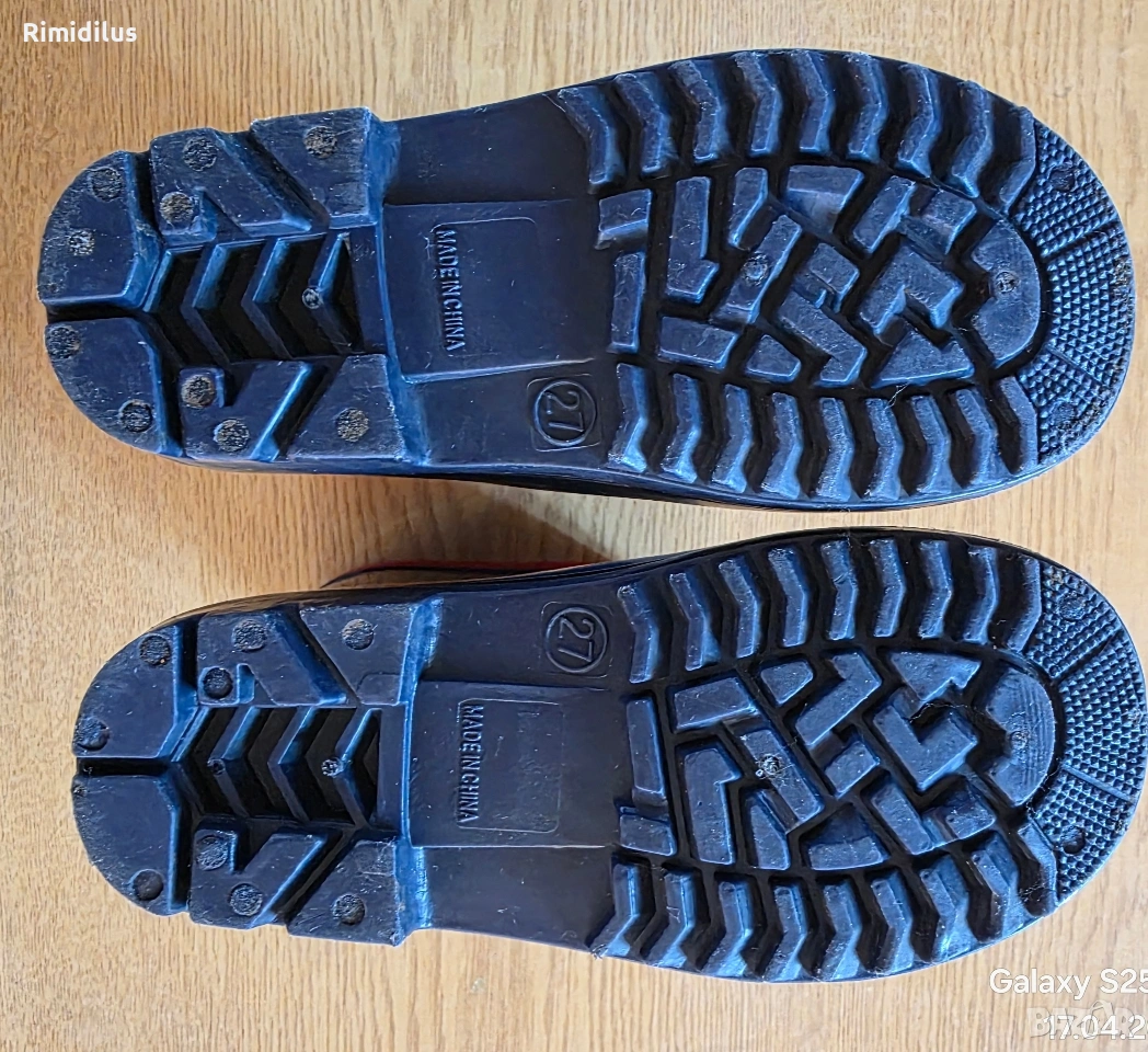 Детски гумени ботуши размер 27. Имат меко вградено чорапче отвътре. Носени са 2 пъти . По гумената част и в самия ботуш няма забележка. Имат леко задрано по горната червена част.