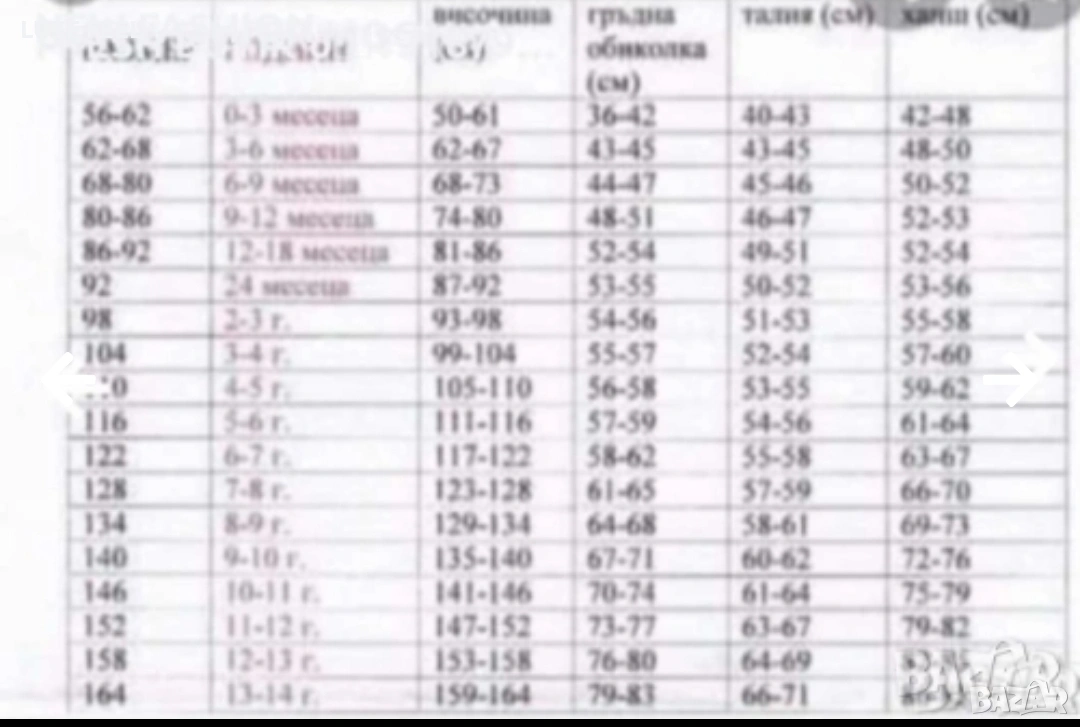 2-3 години (ръст до 98 см.) 3-4 години (ръст до 104 см.) 4-5 години (ръст до 110 см.) Ръст до 116 см Ръст до 122 см Ръст до 128 см Ръст до 134 см Ръст до 140 см Ръст до 146 см Ръст до 152 см Ръст до 158 см