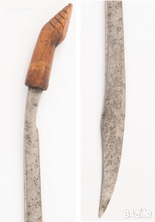 Характерно е с разширение към върха, което измества центъра на тежестта напред. Това му придава огромна сила при размах и удар.