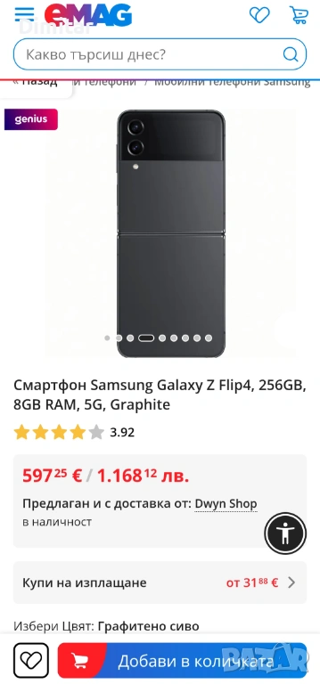 Цената е добра, защото моделът по принцип се продава значително по-скъпо, дори в употребявано състояние. Тук получавате висок клас сгъваем смартфон с голям капацитет памет на значително по-ниска цена, като единственият компромис е козметичният дефект на дисплея. Подходящ е за хора, които искат модерен телефон на изгодна цена или второ устройство.