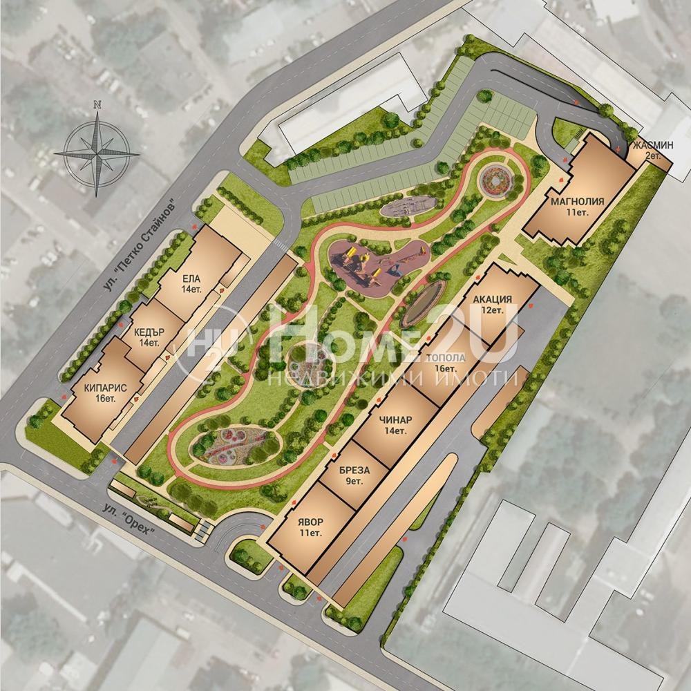 Комплексът от затворен тип със съвременна концепция за комфорт и спокойствие, съчетаваща градска среда с богато озеленяване. В централната си част е изграден впечатляващ парк с площ от 10 дка, изцяло освободен от автомобилен достъп 100% зелени площи, алеи за разходка и колоездене, детски площадки, зони за отдих и спортни съоръжения.